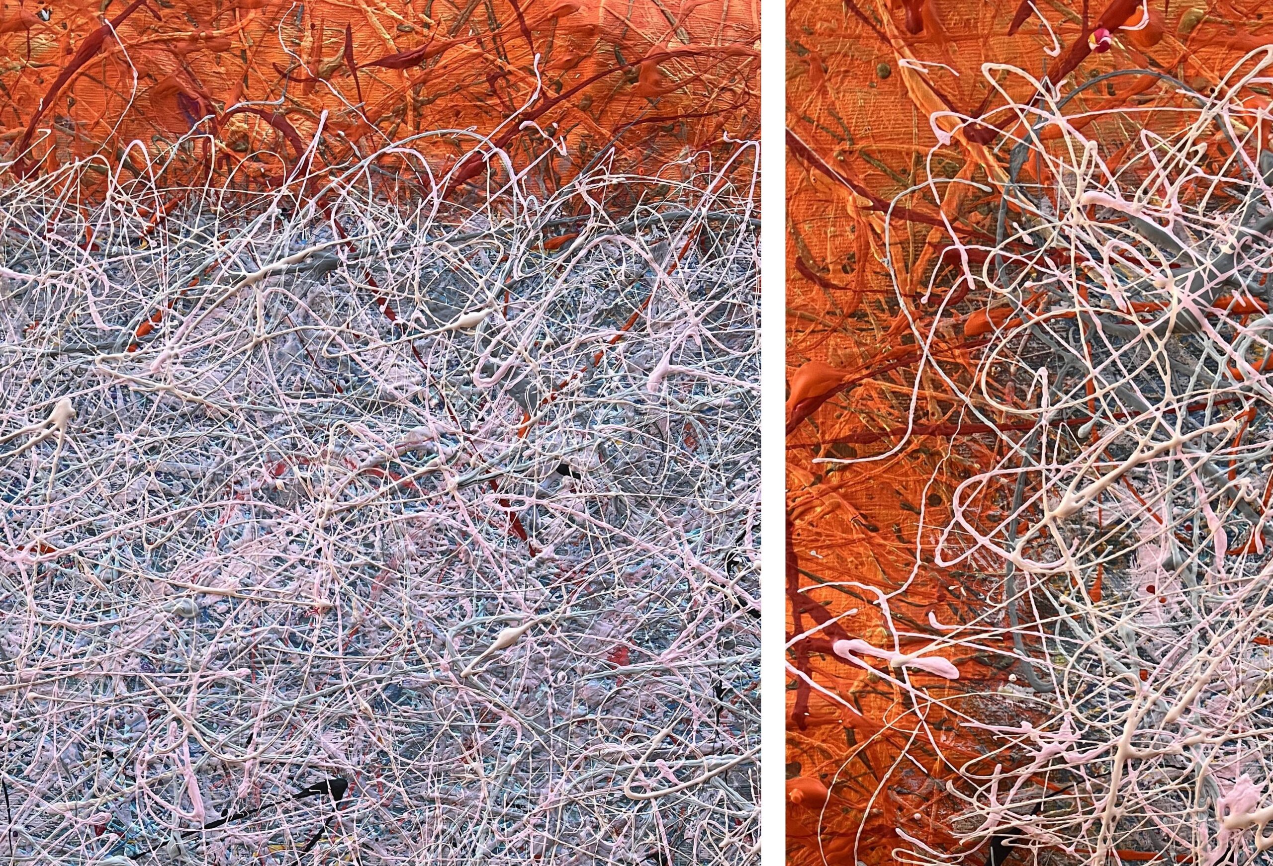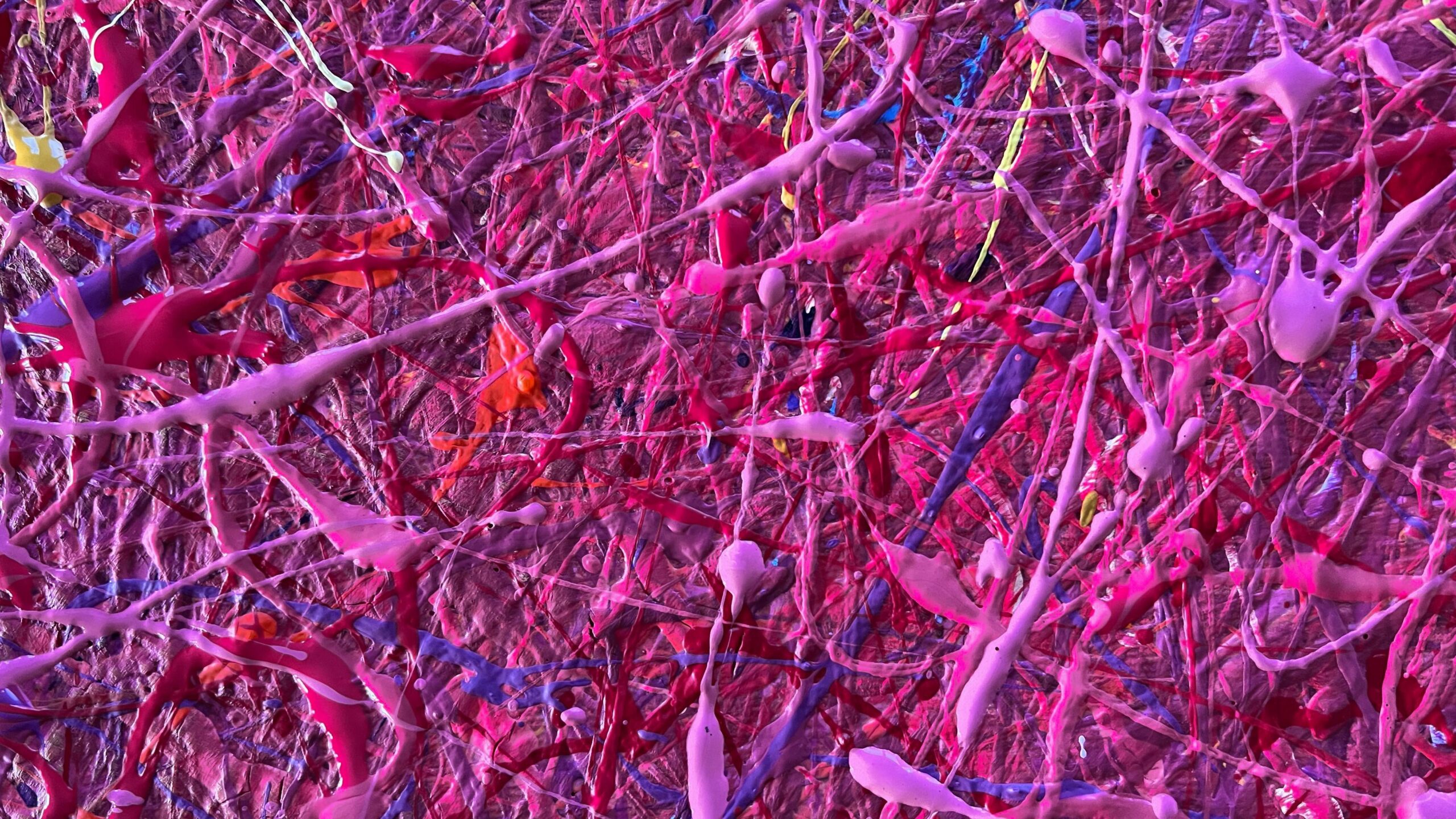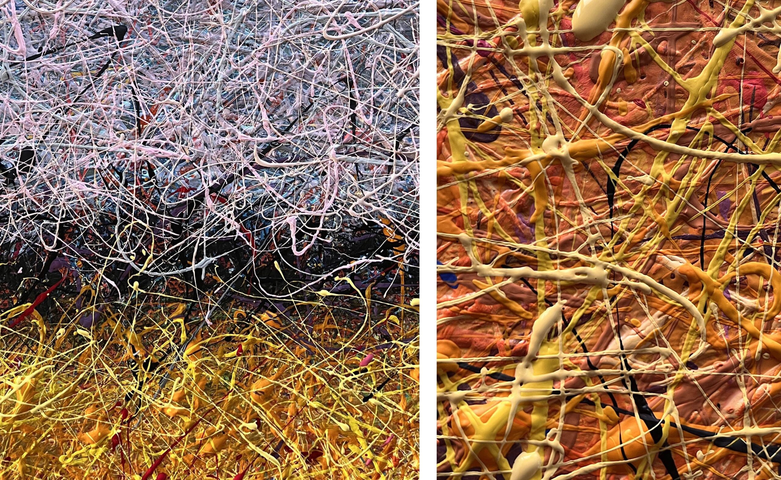 Painting is made using multi-layer paint technique. A million multi-colored splashes dry before each subsequent coat. Typically, the paint has about 10 coats of application of splashes. Splashes in the Pollock style.