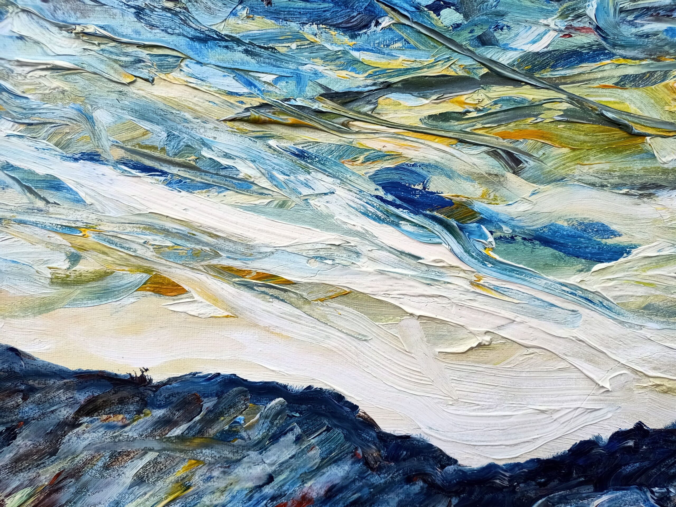 My painting is fast, to consume quickly, but with a prolonged visual aftertaste that merges and changes each time you observe the work, The purity of the pigments applied invites the observer to stare at the work to begin to see the colors dance and convey the emotion.