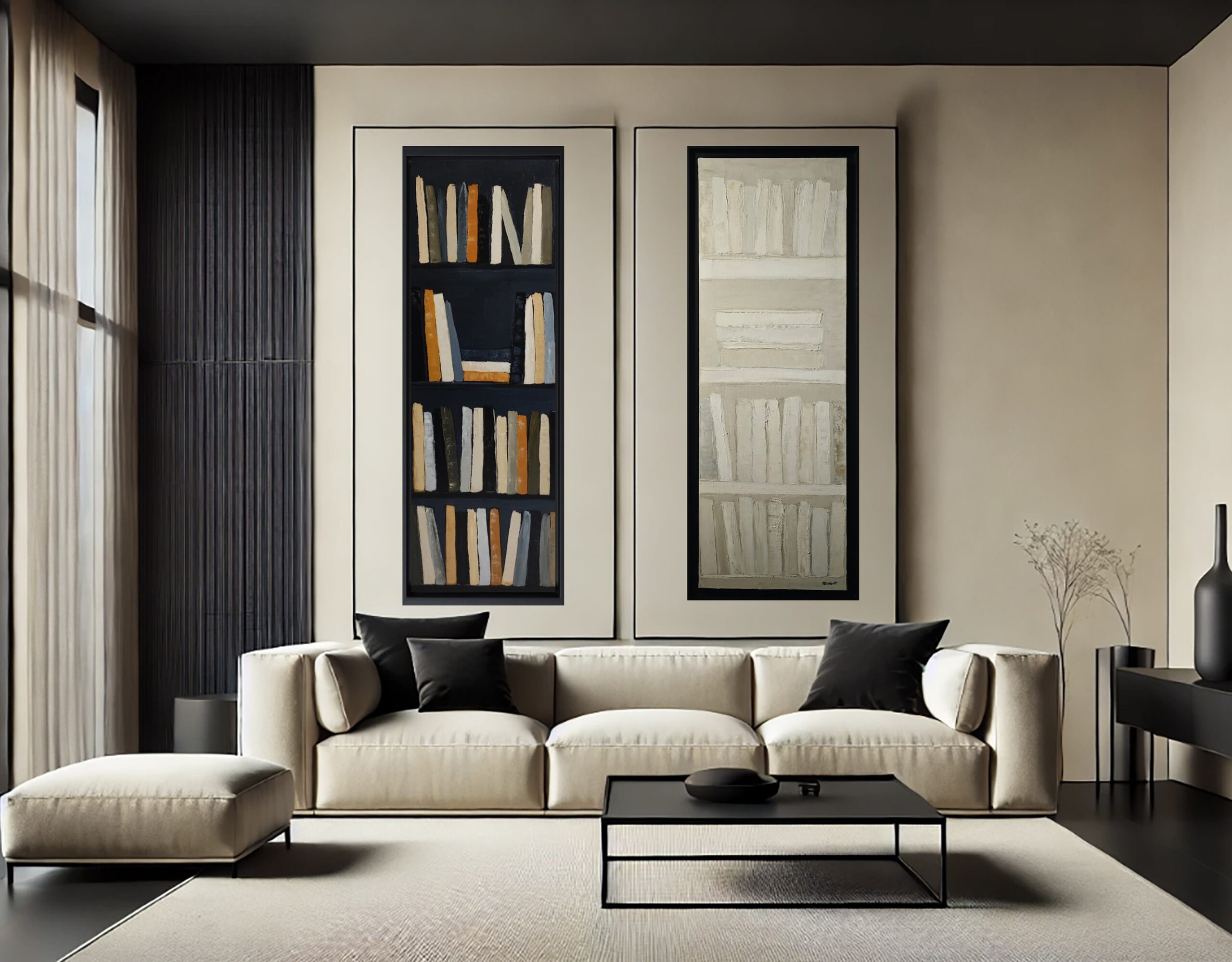 "Chroniques de l'esprit" est une œuvre qui nous invite à une réflexion profonde sur la manière dont nous construisons et entretenons notre savoir. Au-delà de la simple représentation d'un meuble ou d'une bibliothèque, elle devient un véritable espace mental où se croisent mémoire, connaissance et contemplation. Le choix du châssis, noir ou en bois naturel, permet à la toile de se fondre dans son environnement tout en attirant le regard sur la force et la subtilité de son message.