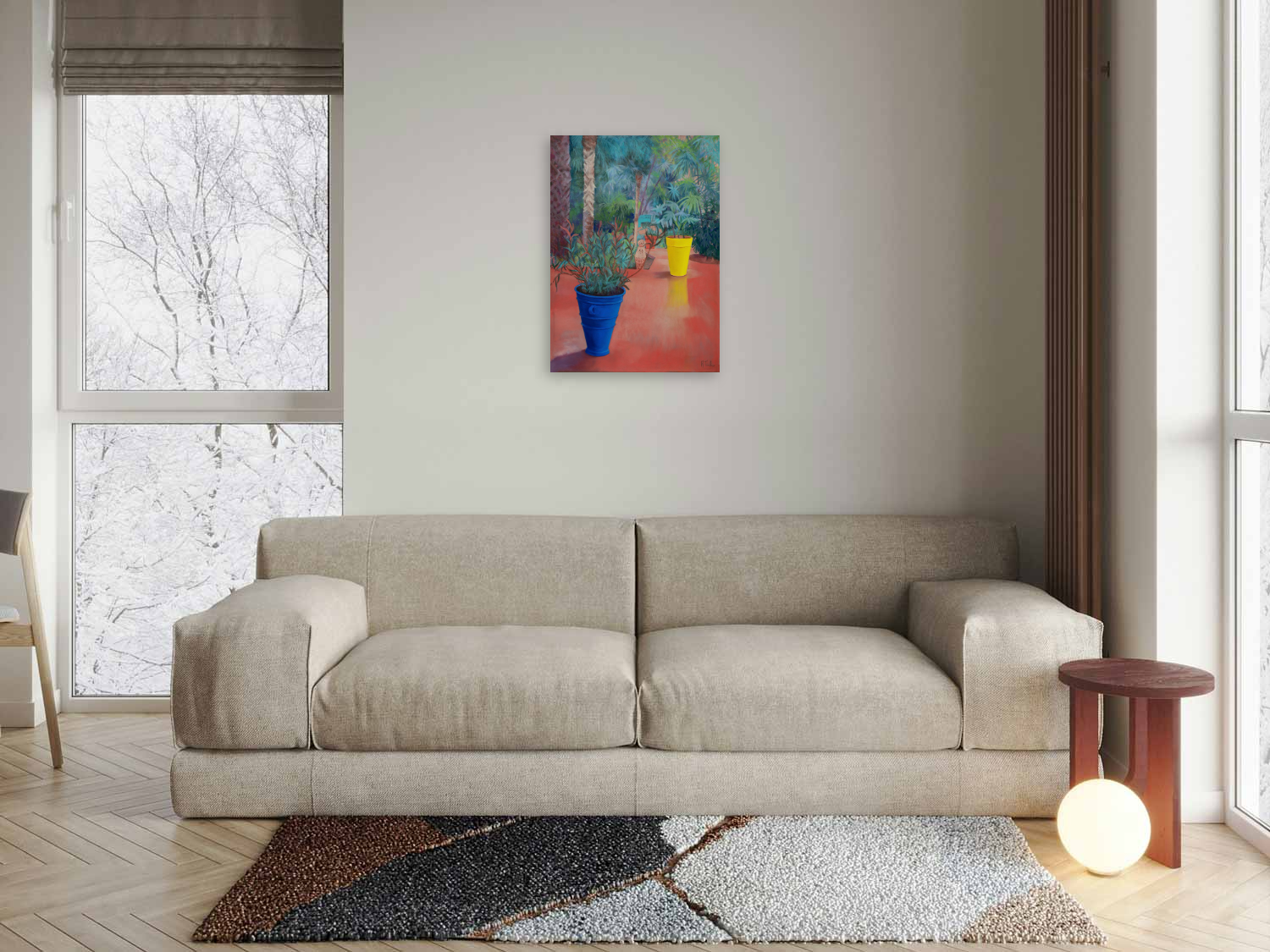 The artwork (Couleur Majorelle VI by Agnès Tiollier) is available for pickup at BelArt Gallery in Brussels, Belgium, or it can be delivered to the address of your choice within 2 to 3 weeks after your order is confirmed. The artwork is insured during transportation, so there’s no risk. Origin: Belgium.