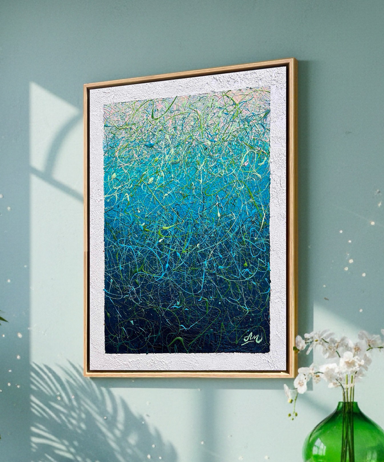 The artwork(Depth of Stillness – framed by Nadin Antoniuk) is available for pickup at BelArt Gallery in Brussels, Belgium, or it can be delivered to the address of your choice within 2 to 3 weeks after your order is confirmed. The artwork is insured during transportation, so there’s no risk. Origin: Belgium.