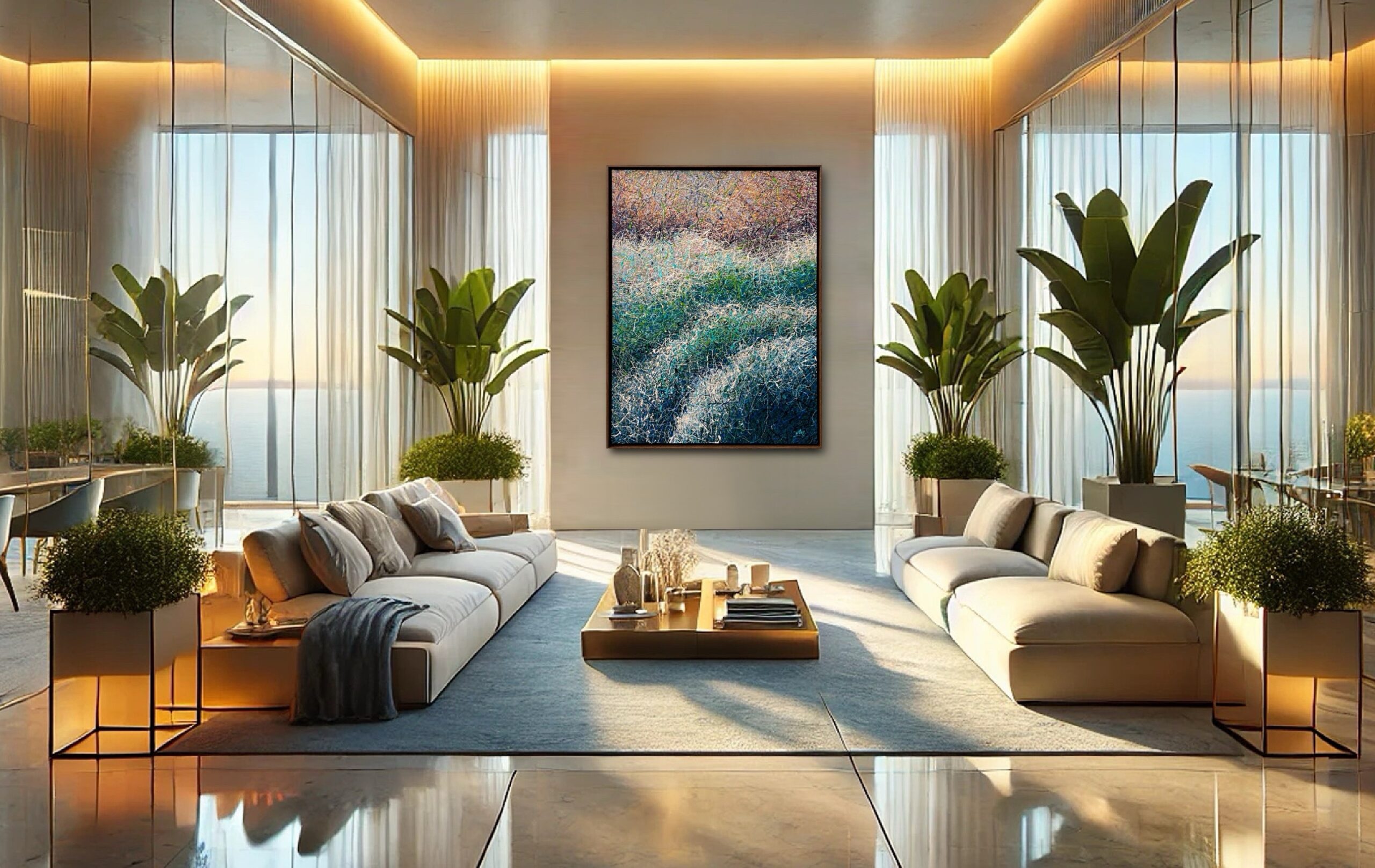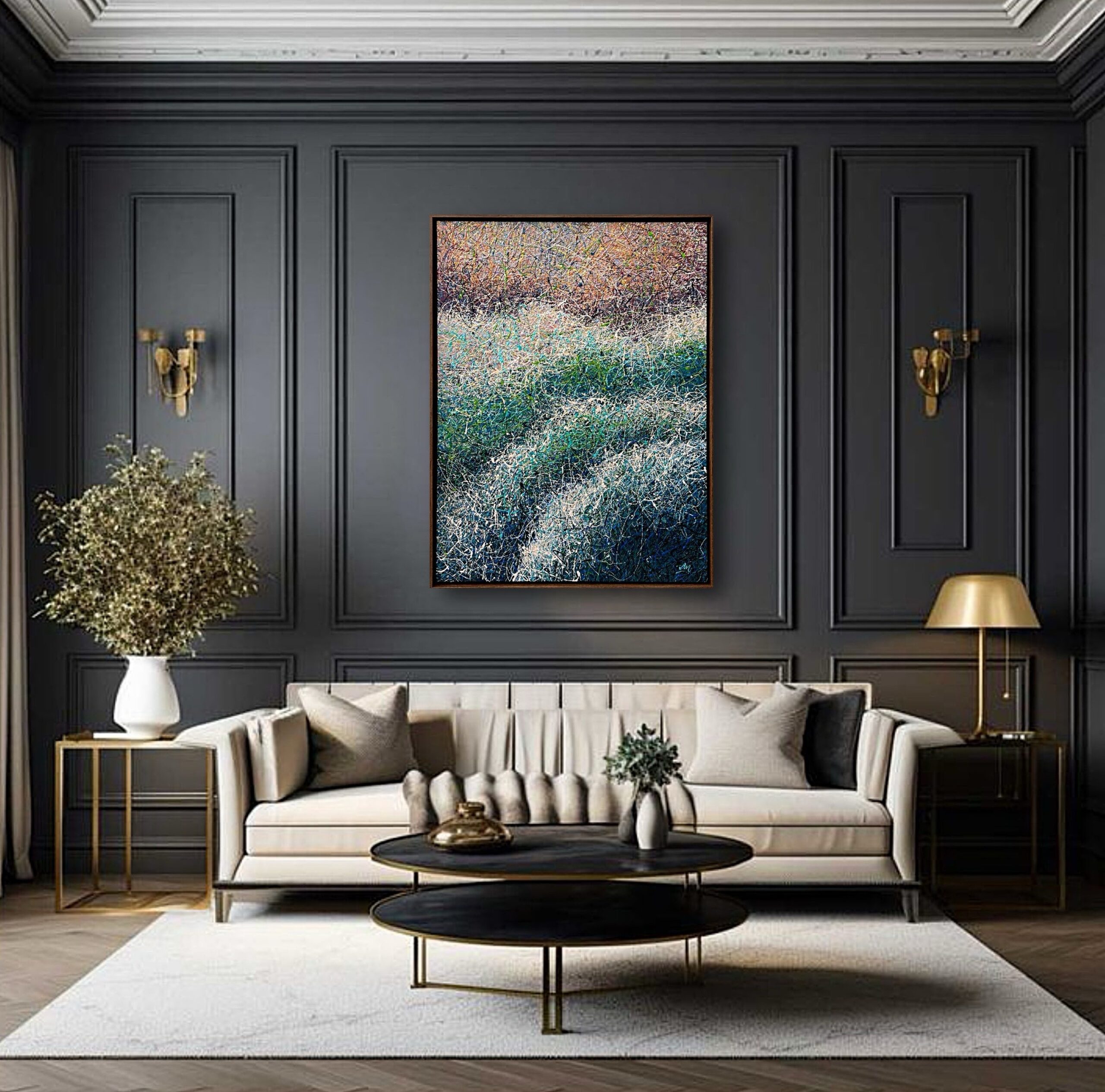 Experience the serene rhythm of the ocean with In the Quiet of Closed Eyes — a luxury abstract painting in emerald, aqua, cream, and sand tones. This richly textured canvas, framed and ready to hang, brings coastal elegance and timeless sophistication to modern high-end interiors.