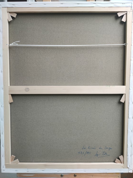 The artwork (La rivière des songes by Agnès Tiollier) is available for pickup at BelArt Gallery in Brussels, Belgium, or it can be delivered to the address of your choice within 2 to 3 weeks after your order is confirmed. The artwork is insured during transportation, so there’s no risk. Origin: Belgium.