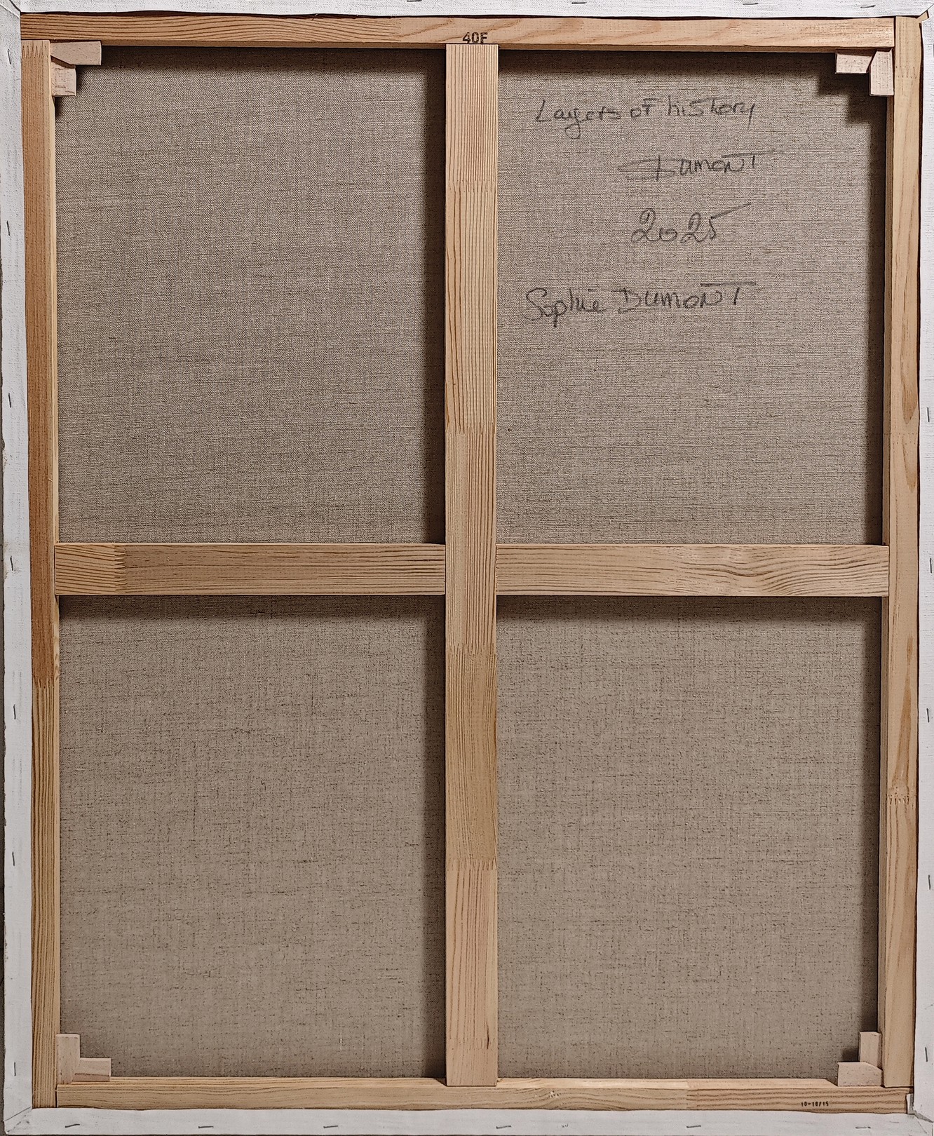 Layers of History is a work in which the superposition of colors and materials evokes the stratification of time and memory. Through a gestural approach using oil and palette knife, Sophie Dumont sculpts the canvas by juxtaposing deep and luminous tones, creating a composition that is both vibrant and contemplative.