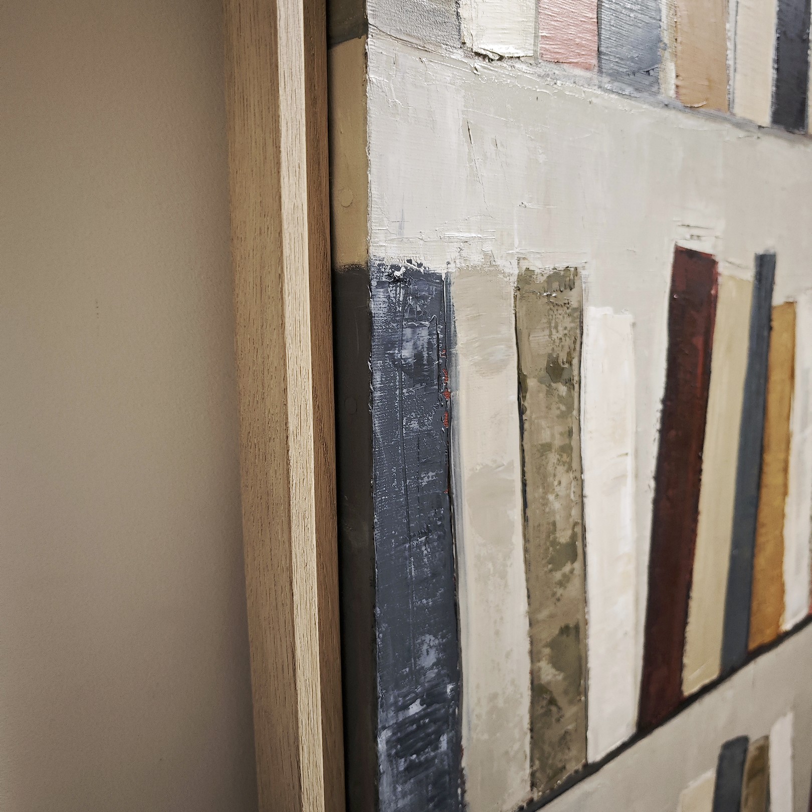 Each layer seems to tell a story, like a vestige of the past buried beneath the pictorial material. The subtle contrasts and marked reliefs give this work a particular intensity, where abstraction blends with an almost archaeological sensation of the landscape.