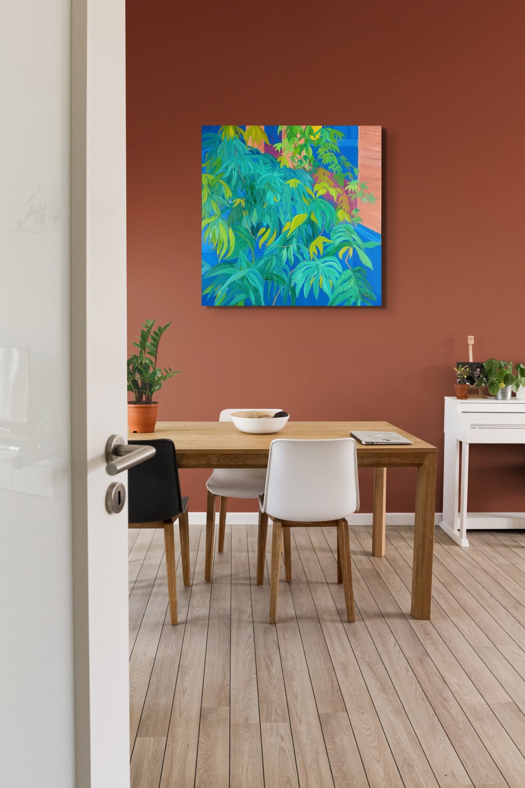 The artwork (Luxuriance à Majorelle by Agnès Tiollier) is available for pickup at BelArt Gallery in Brussels, Belgium, or it can be delivered to the address of your choice within 2 to 3 weeks after your order is confirmed. The artwork is insured during transportation, so there’s no risk. Origin: Belgium.