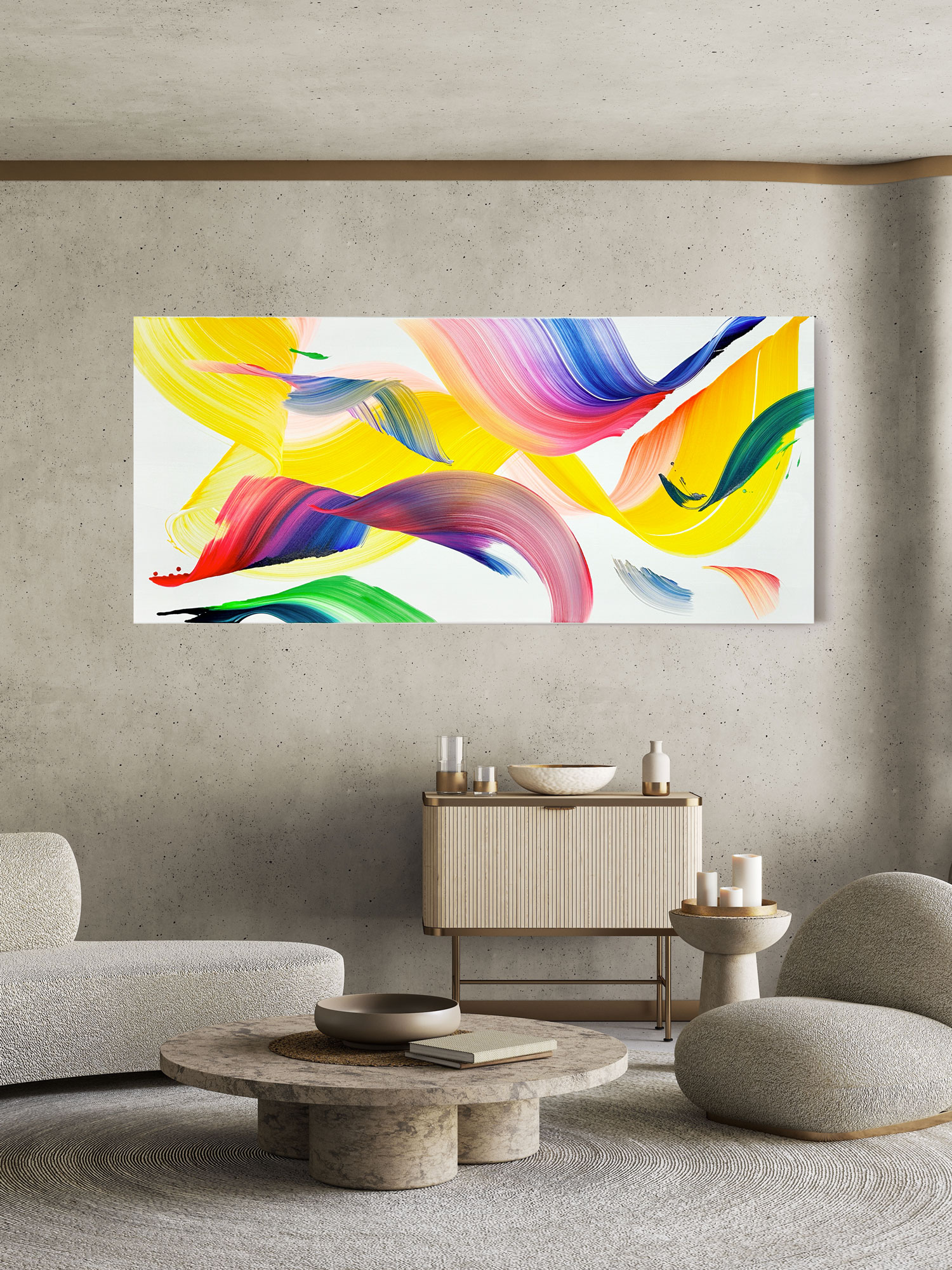 For a larger-than-life statement, “Ciao Ciao” in grande taille makes an impact in any space, filling the room with vibrant energy. Explore more of Schizas’s art to uncover how his unique approach to color and texture invites a deeper emotional connection, engaging both the mind and the senses.