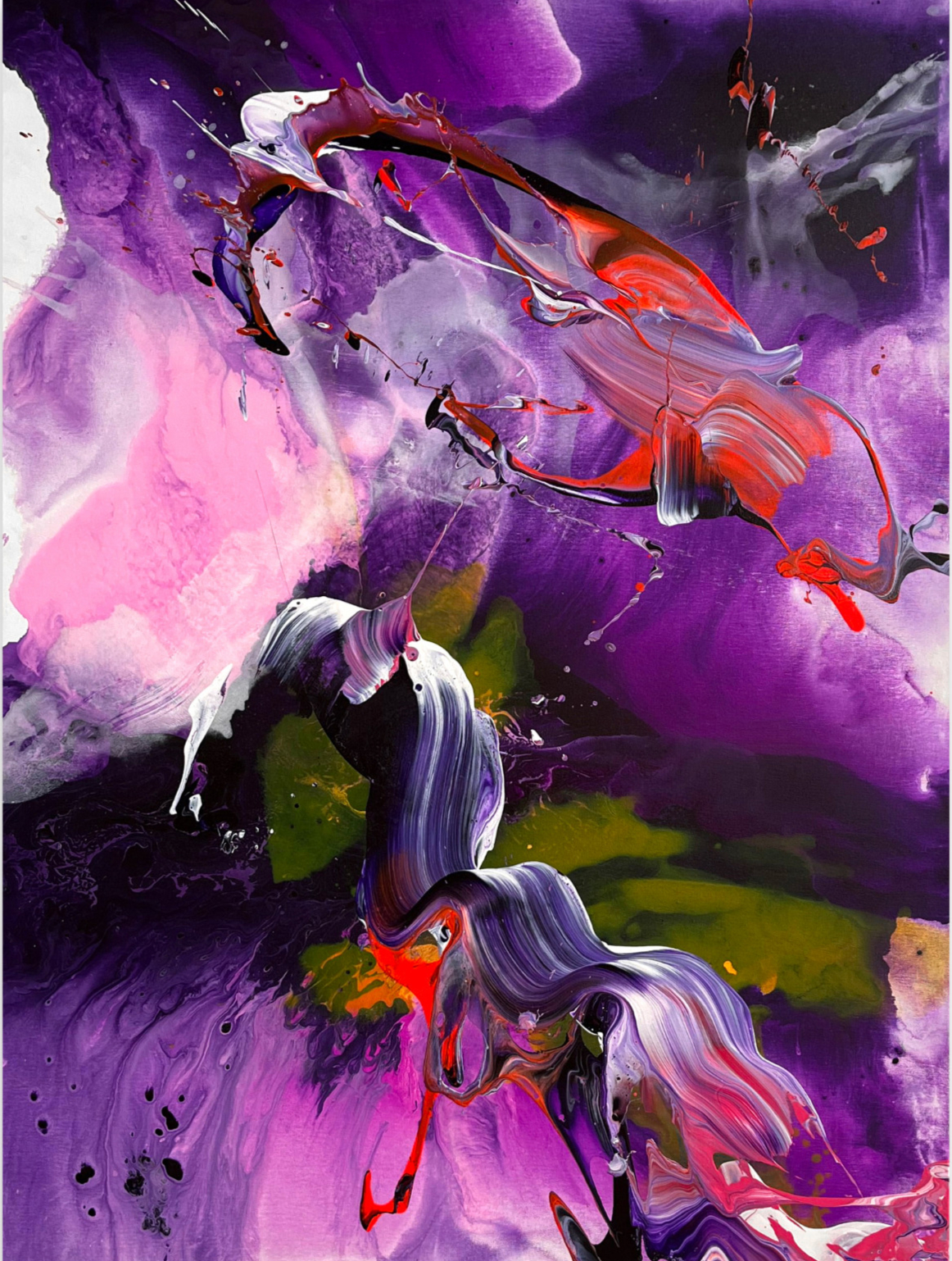 “La puerta al chaos” by Nikolaos Schizas feels like standing at the edge of something unknown, aninvitation and a warning all at once. The composition swirls with controlled disorder, where layers of paint seem to be in constant flux, shifting between creation and destruction. There’s a pulse to it, an energy that refuses to settle, pulling the viewer deeper into its visual complexity.