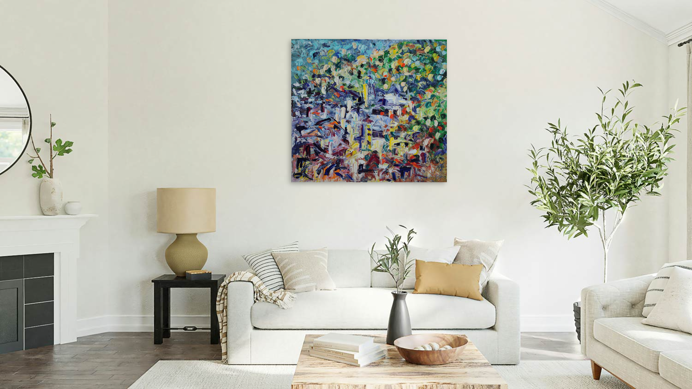 The artwork(Paese Albpino by Antonino Puliafico) is available for pickup at BelArt Gallery in Brussels, Belgium, or it can be delivered to the address of your choice within 2 to 3 weeks after your order is confirmed. The artwork is insured during transportation, so there’s no risk. Origin: Belgium.
