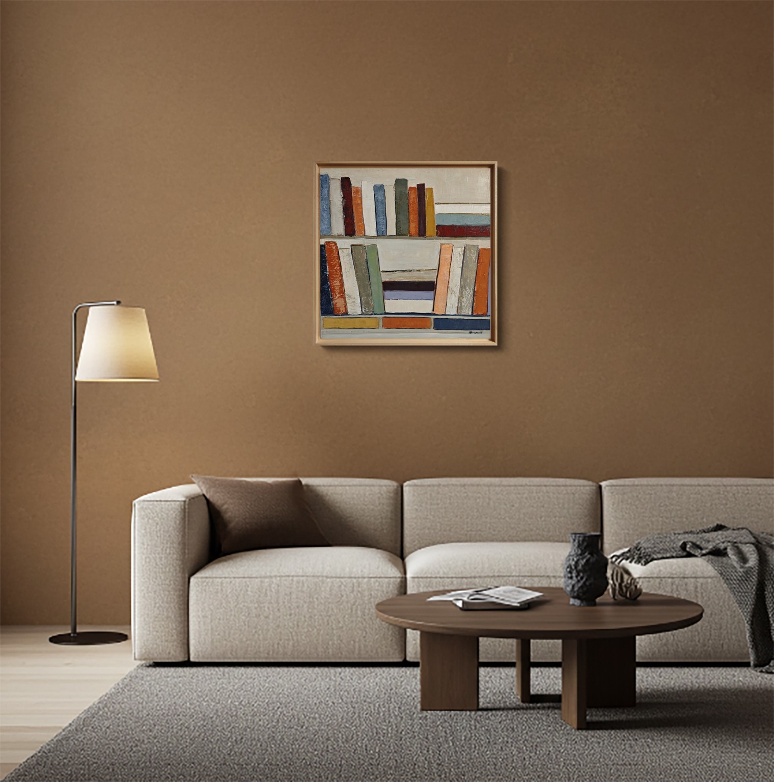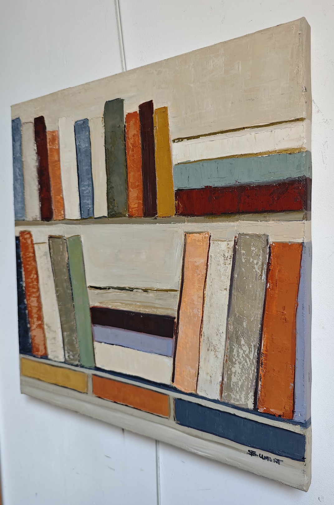 Far from representing the library, the work reveals its soul: a silent geometry, nourished by inner light and rhythmic balance. On the border between abstraction and memory, it is part of the continuity of an immediately recognizable plastic language, at once sensitive, constructed and timeless.