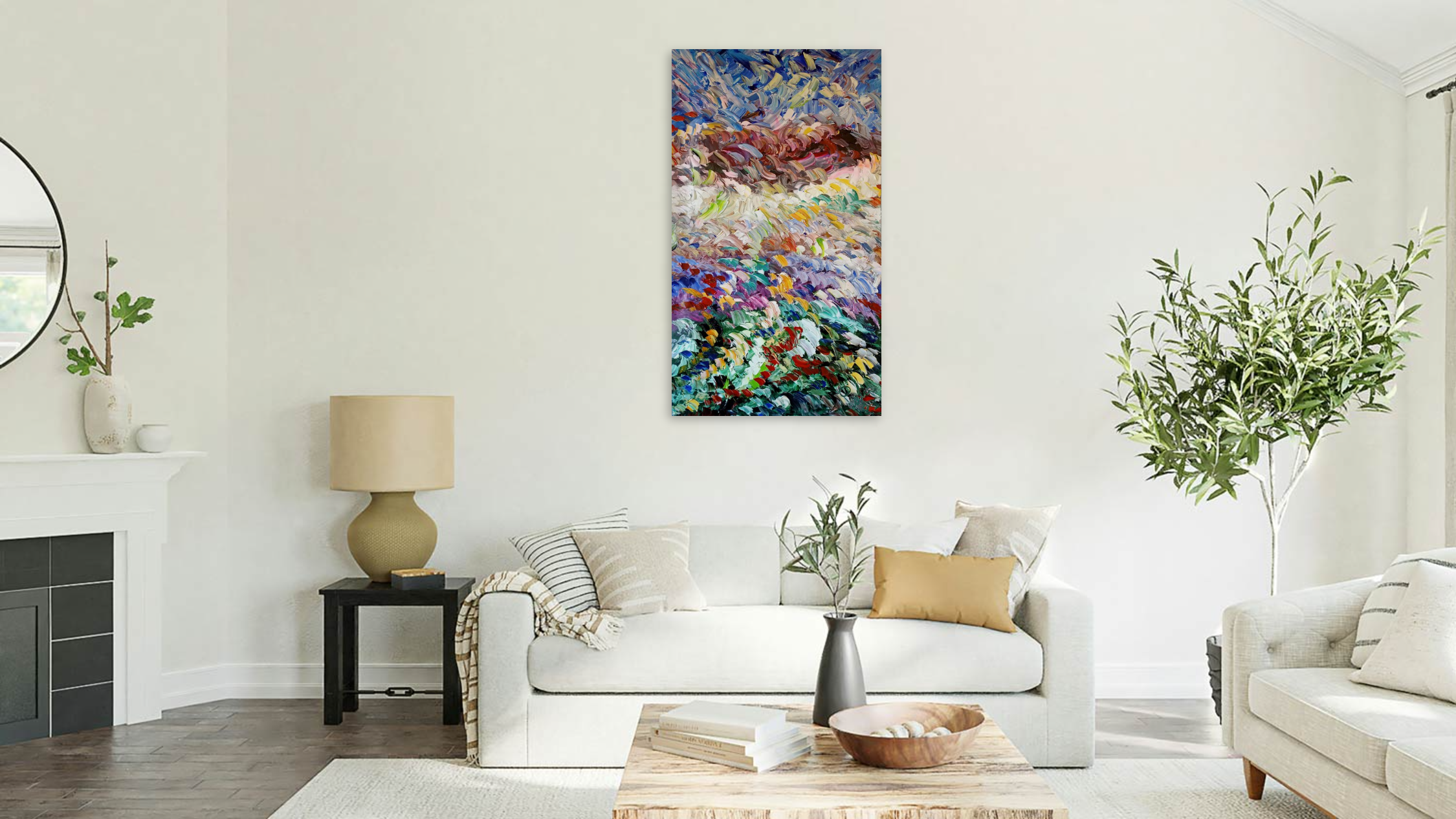 Professionally, as the creator, I ensure that “Scroscio d’acqua” will reach its new home with the utmost care. The painting is securely packaged, protected, and delivered swiftly by professional couriers, guaranteeing the art’s pristine arrival for immediate enjoyment.