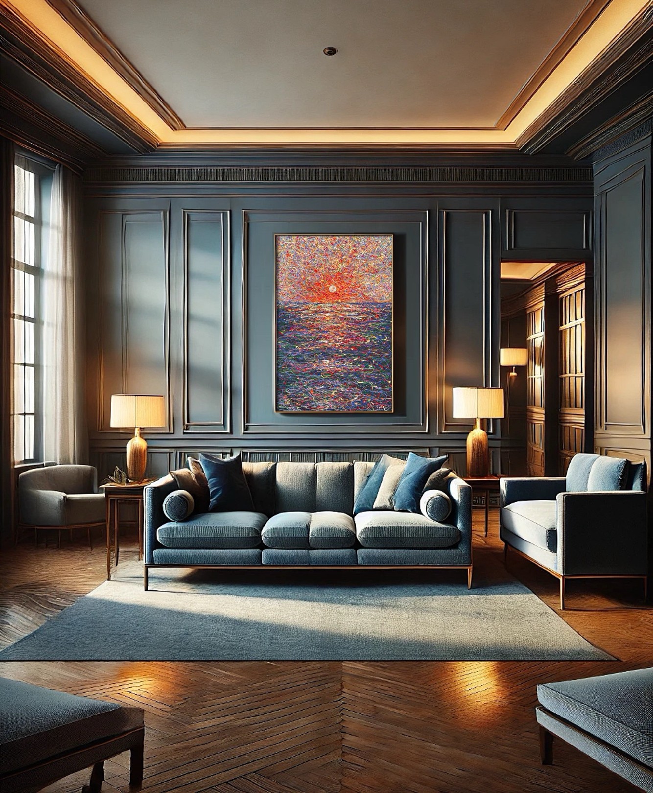 This one-of-a-kind artwork adds depth, light, and energy, making it perfect for modern living rooms, classic interiors, or elegant office spaces.