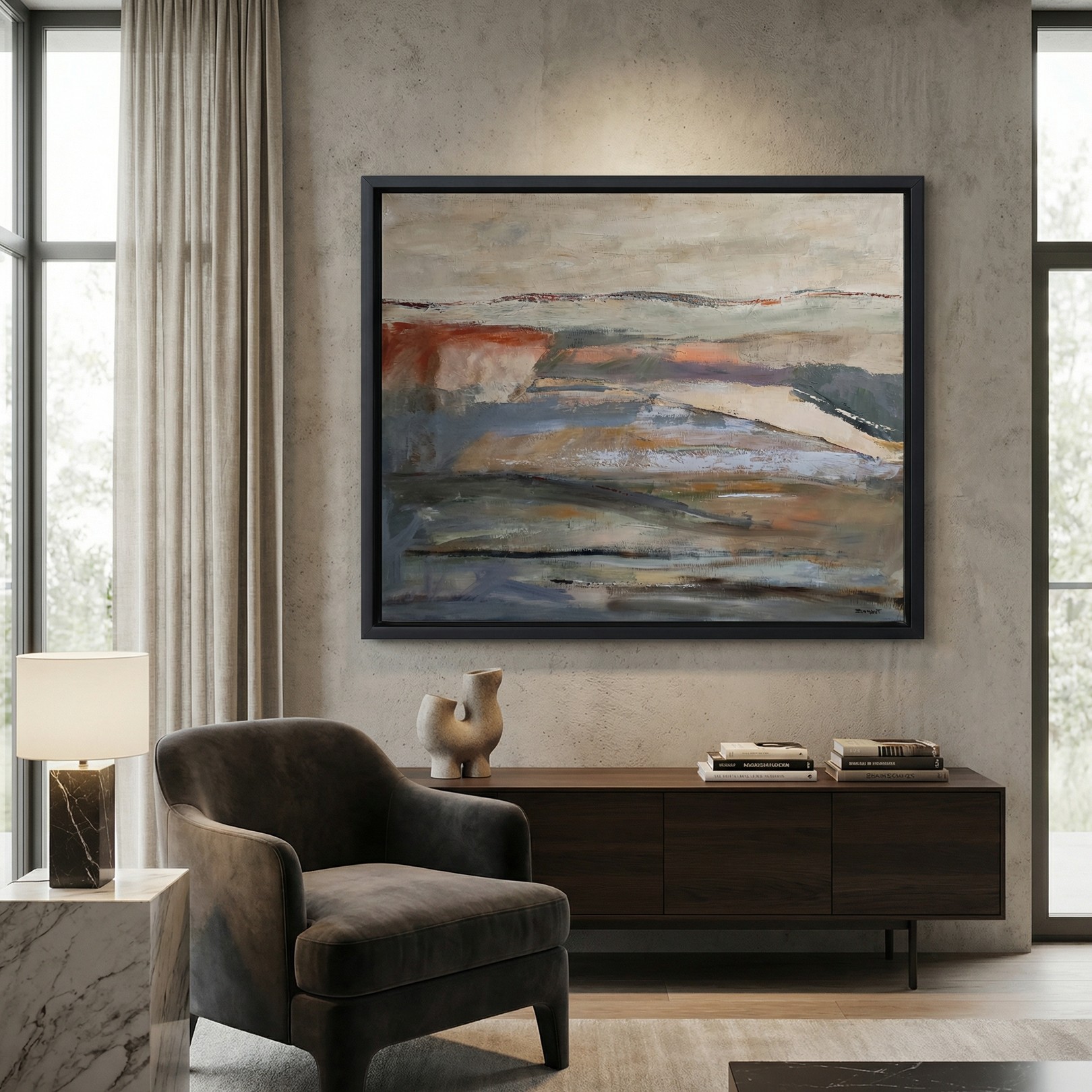 Between abstraction and landscape suggestion, What Lingers is part of a pictorial exploration of silence, duration, and the persistence of sensations. The work offers a subtle, contemplative presence, true to Sophie Dumont’s sensitive and structured style.
