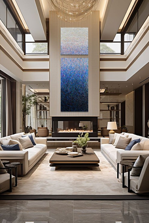 You can also place the two paintings from this diptych within the same space on different walls. This arrangement looks very harmonious — the works subtly echo one another, bringing a sense of balance and wholeness to the interior.
