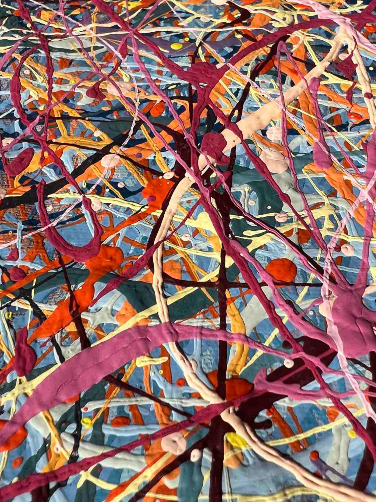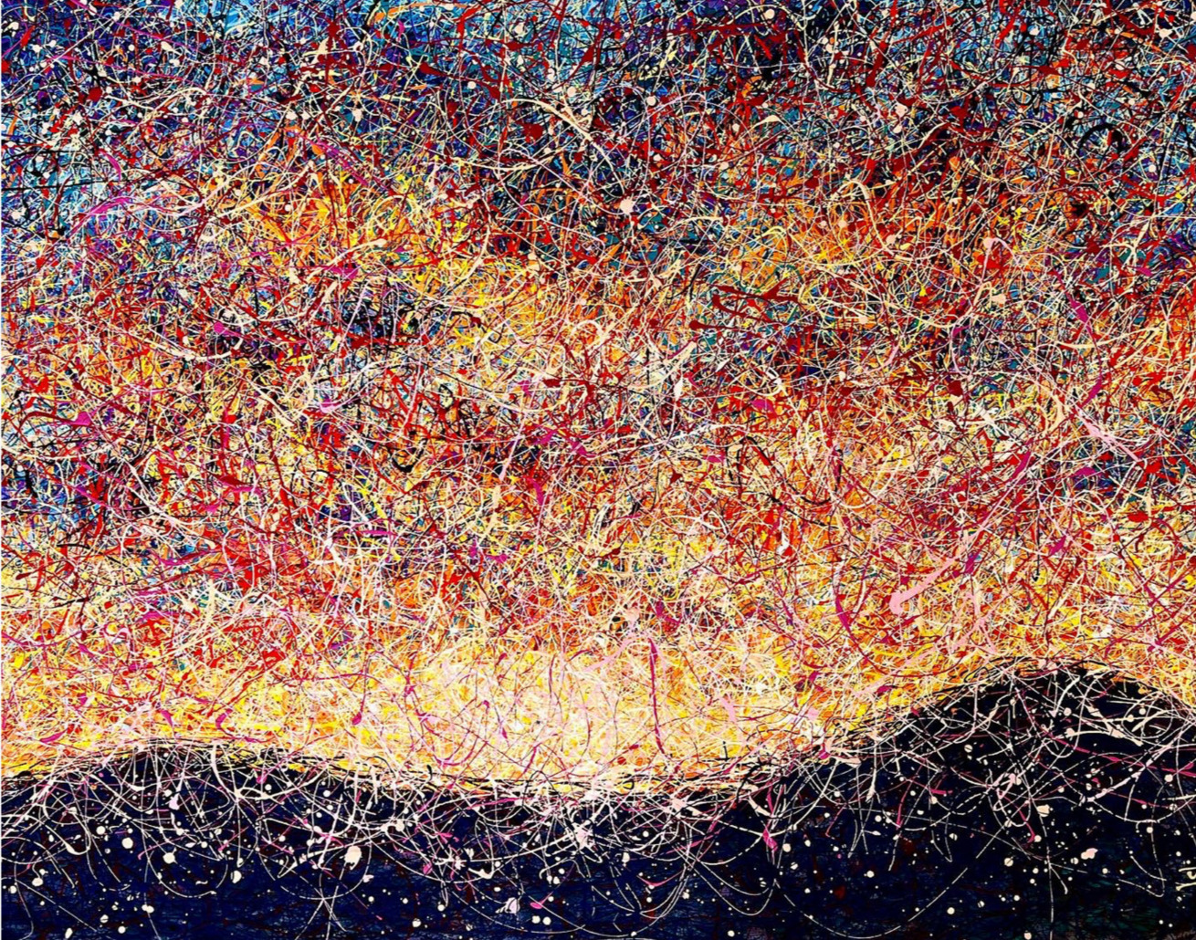 Het schilderij is gemaakt met meerlaagse verftechniek. Schilderstijl - de verf wordt in draden aangebracht. De draden verf lijken zich te verstrengelen en creëren hun eigen canvas. Het schilderij is gemaakt met meerlaagse verftechniek. Een miljoen meerkleurige spatten drogen voordat elke volgende laag van een gekleurde verfdraad wordt aangebracht. Over het algemeen heeft het schilderij meer dan 50 lagen van de toepassing van kleurrijke spatten.