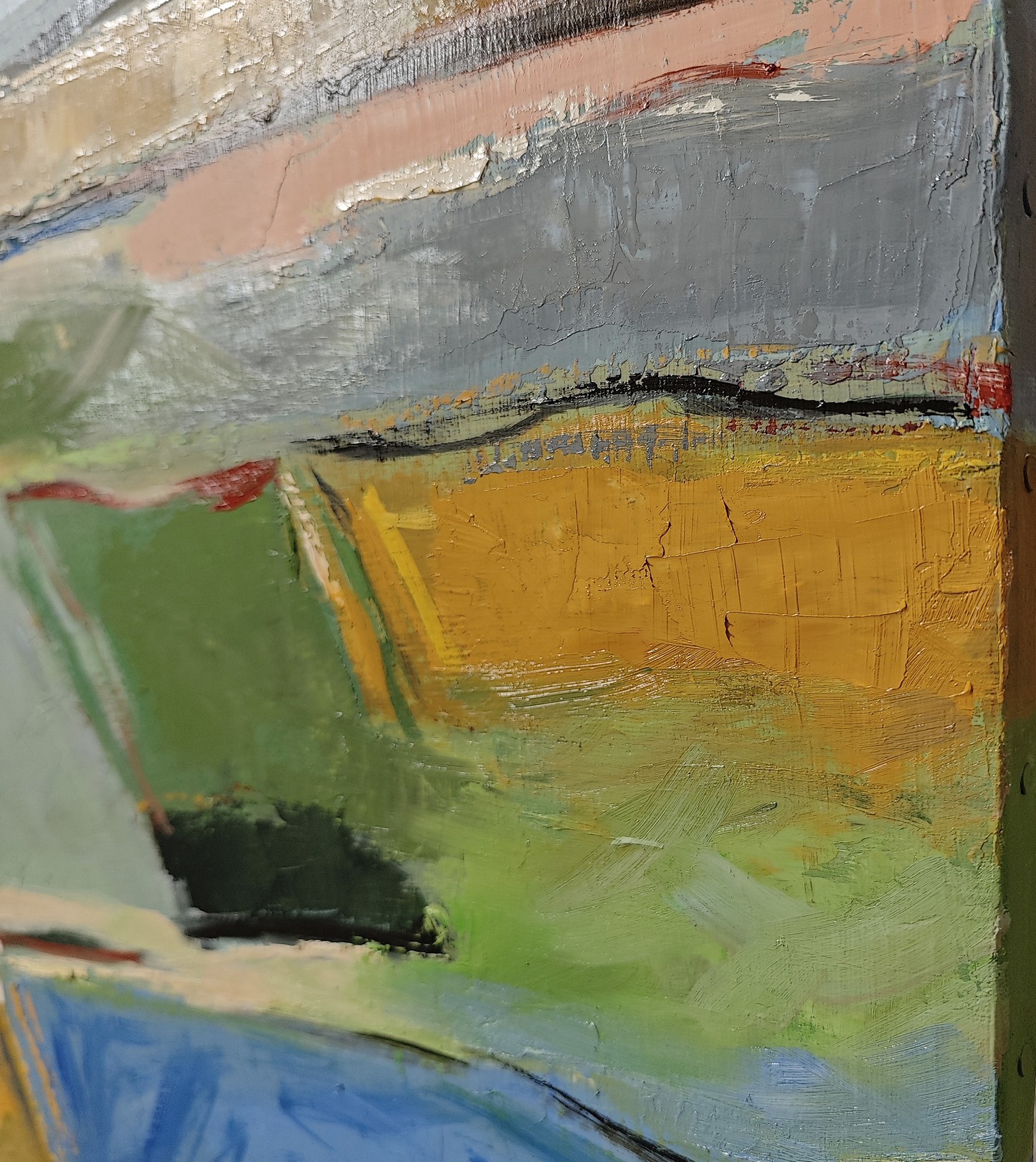 In Rhapsodie Colorée, Sophie Dumont offers us a reinterpreted vision of the landscape, where matter and color combine to create a vibrant and immersive composition. This oil on canvas, initially created in 2024 and reworked in 2025, testifies to a process of artistic maturation, where each new intervention enriches the depth and dynamics of the work.