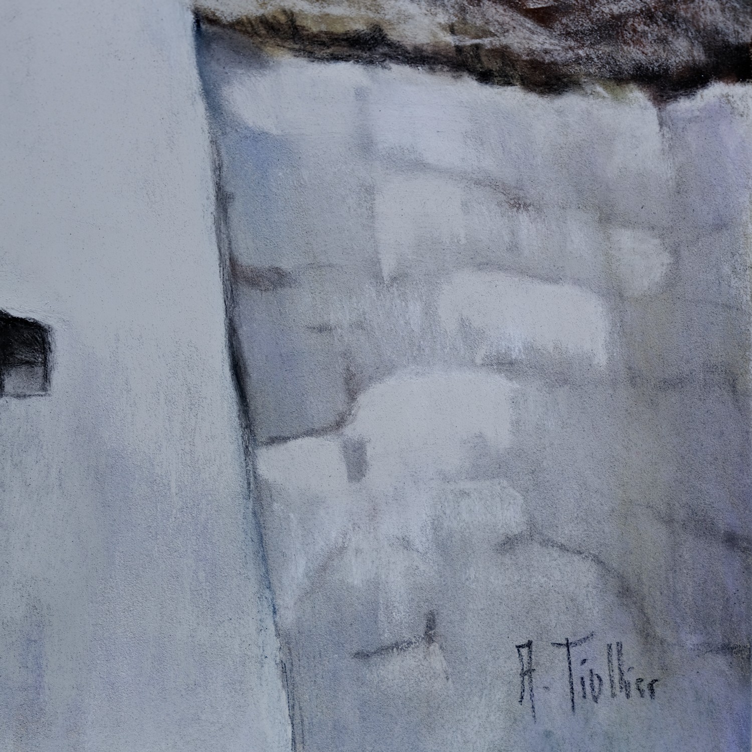 The pastel must be placed under glass by a professional for its final protection and durability.