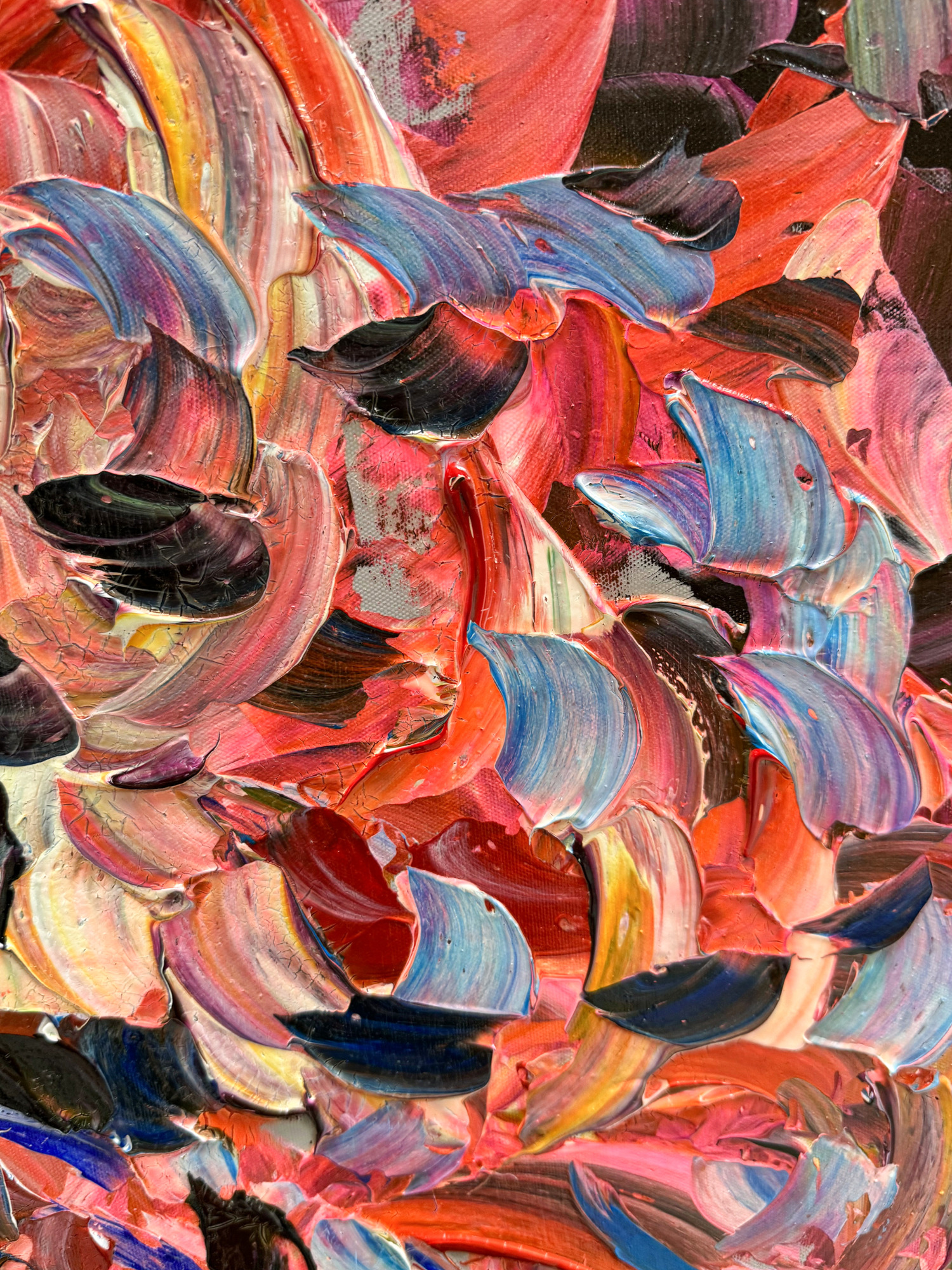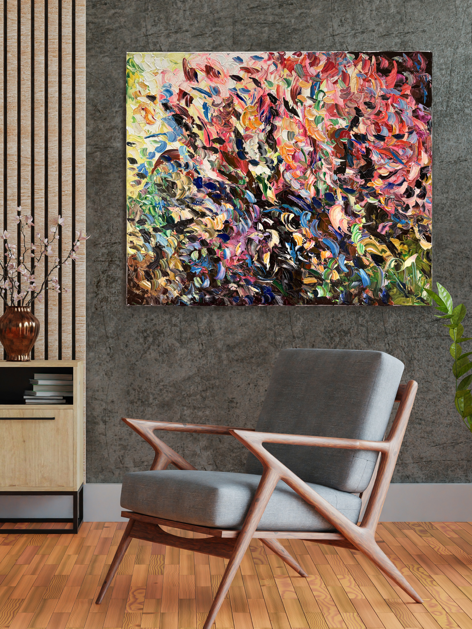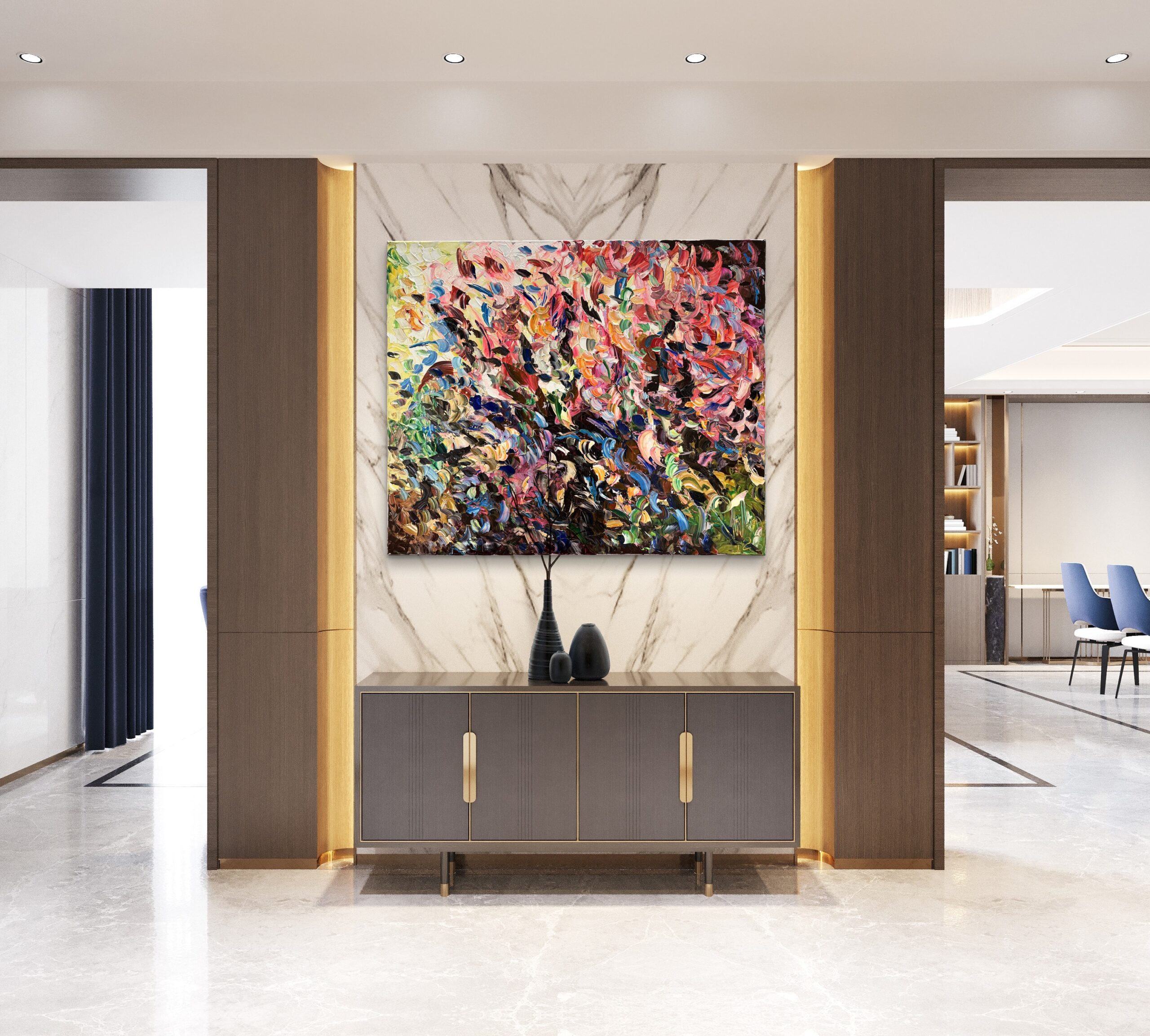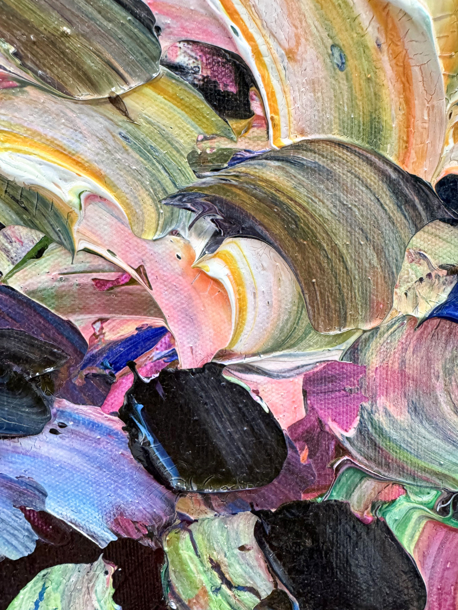 In the serene light of my studio, I’ve captured the vibrant and powerful essence of nature. Each stroke of the spatula on the canvas unveils a unique landscape where sky and earth merge in an eternal dance. The oil on canvas gleams, reflecting not just colours, but the emotions and sensations I wish to convey.