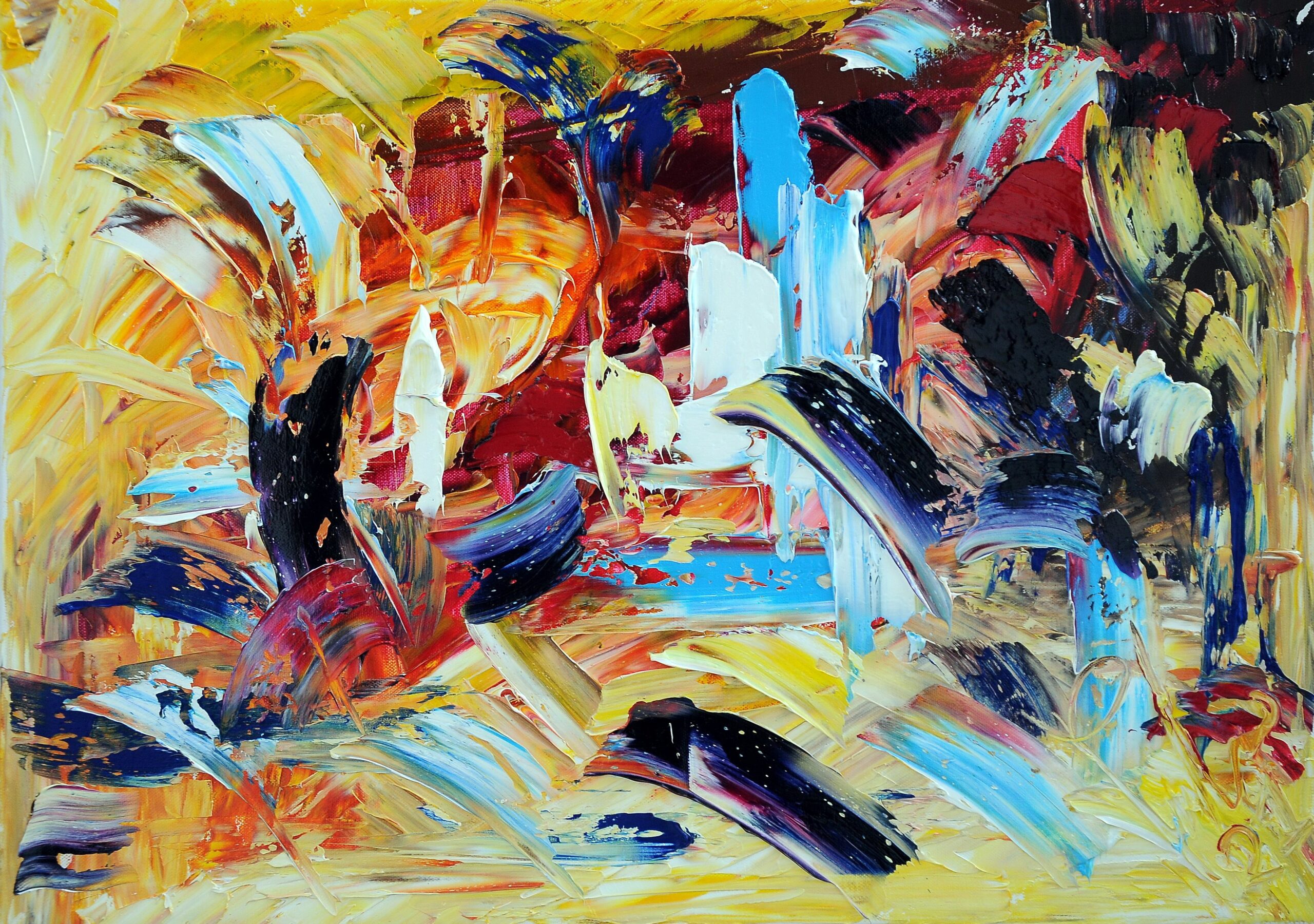 The shapes, lines, colors create a disruptive dynamism, pervaded by intense vigor, but balanced in its dimension.