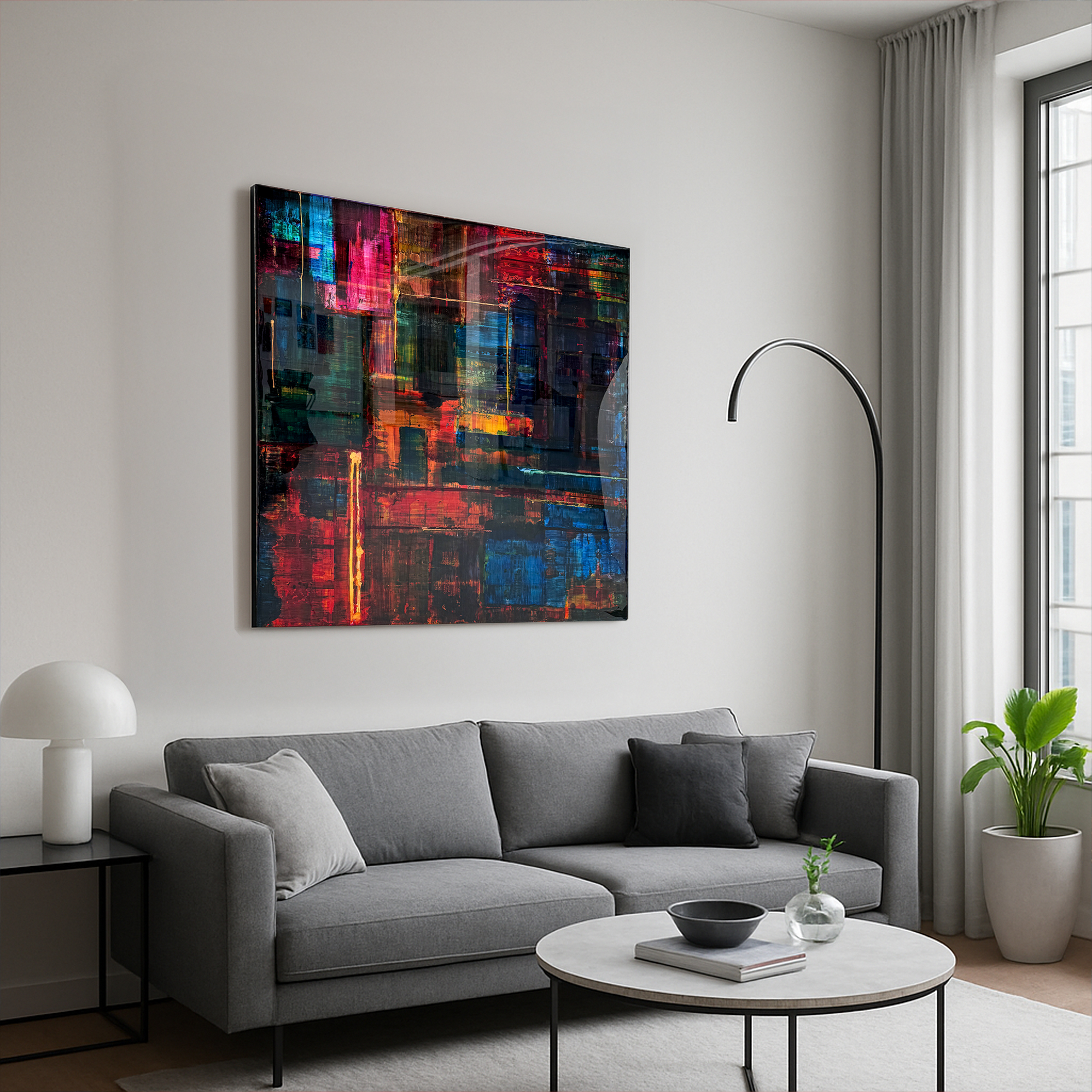 Dominated by vibrant reds and deep blues, James Chiew creates a sense of movement and intensity. The textured surface suggests layers of paint meticulously applied to form a complex, tactile landscape. Hints of black and metallic gold intermingle, adding depth and contrast. The abstract composition evokes a sense of raw emotion and energy, drawing the viewer in with its dramatic color palette. This piece stands out for its bold use of color and texture, offering an immersive visual experience that challenges and engages the observer. Its abstract nature encourages varied interpretations, making it a unique and compelling addition to contemporary art.