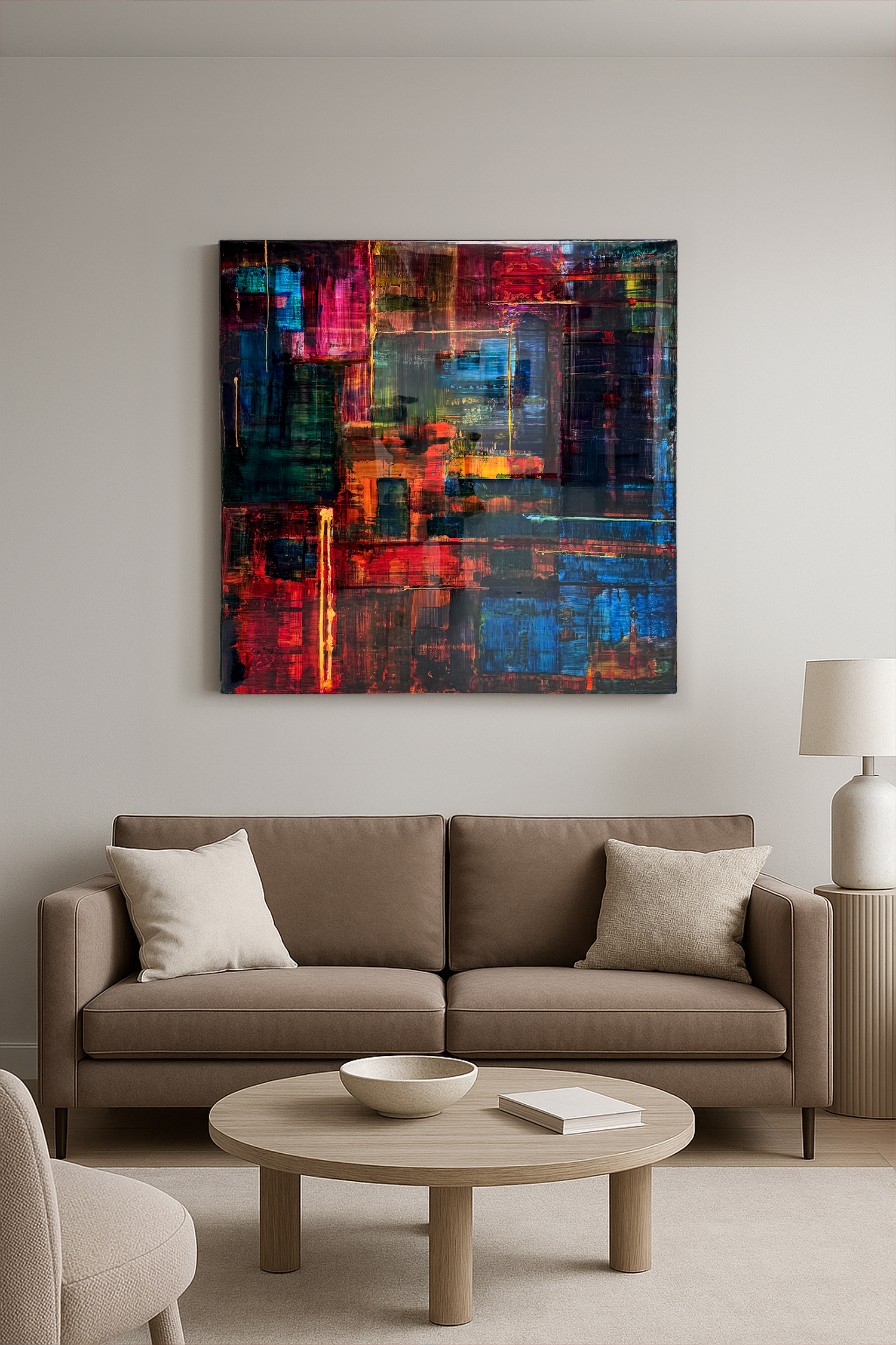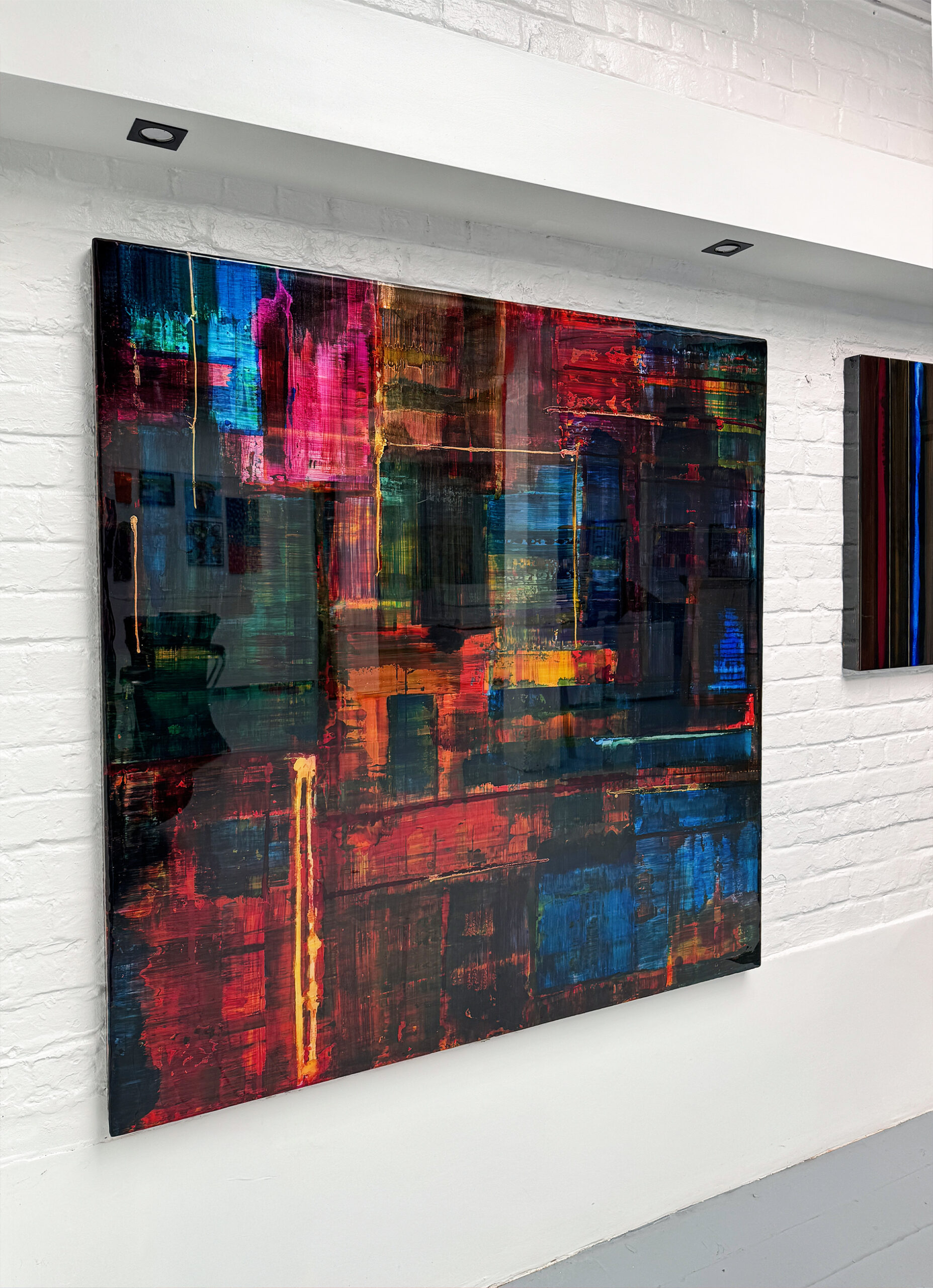 Crafted using many layers of high gloss resin, each enriched with unique pigments, gold leaf, oils, and techniques, the artwork exhibits a mesmerizing depth. It’s difficult to capture the full brilliance of colors and glossy effects in photos; additional images or videos can be provided upon request to offer a more accurate representation.