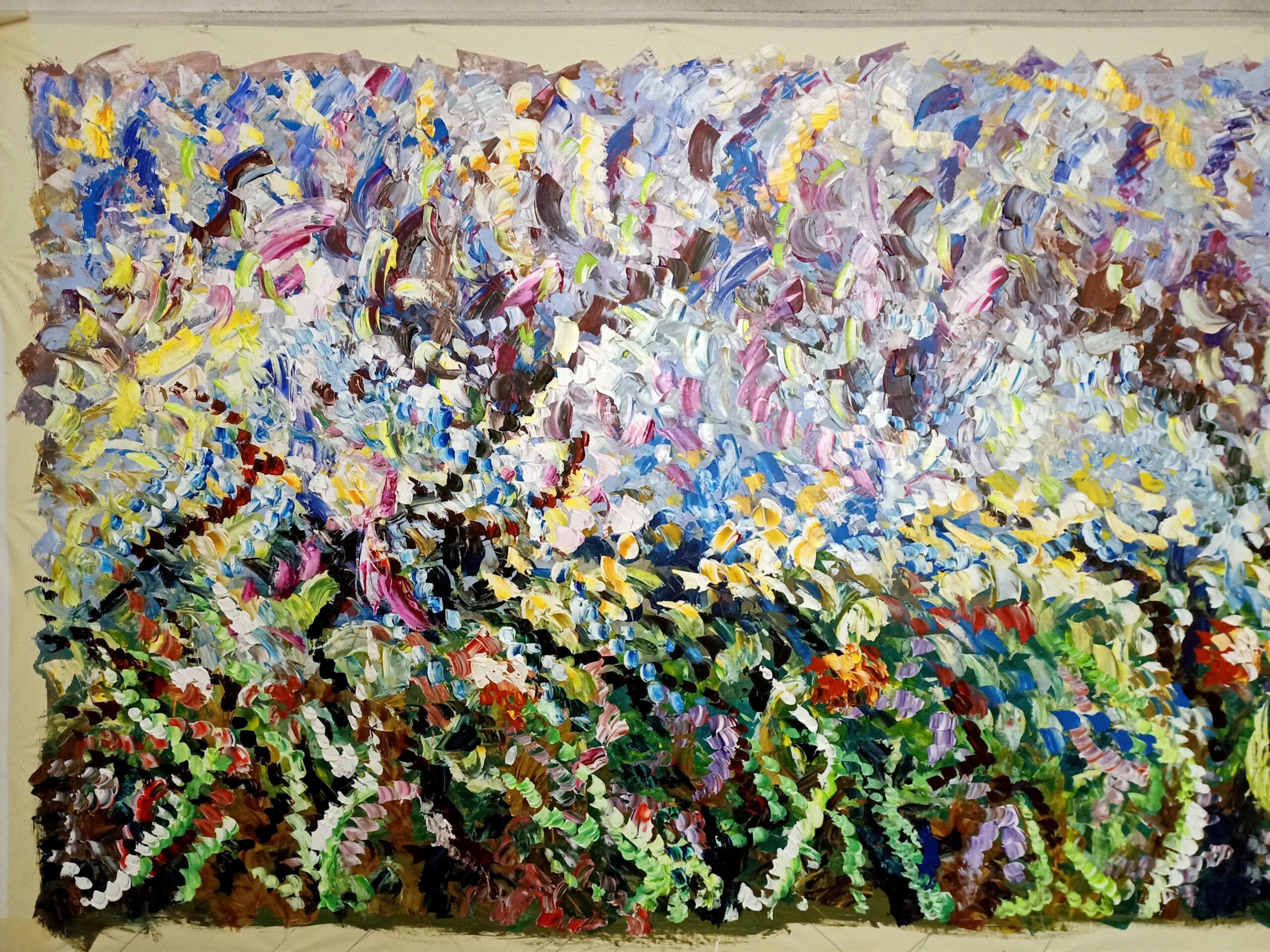 “Big Spring,” my 2022 acrylic creation on a grand canvas of 190x550cm, is an ode to the season of rebirth and awakening. This piece is a vast landscape of color and life, a depiction of spring’s ability to infuse the world with vibrant energy and transformation.