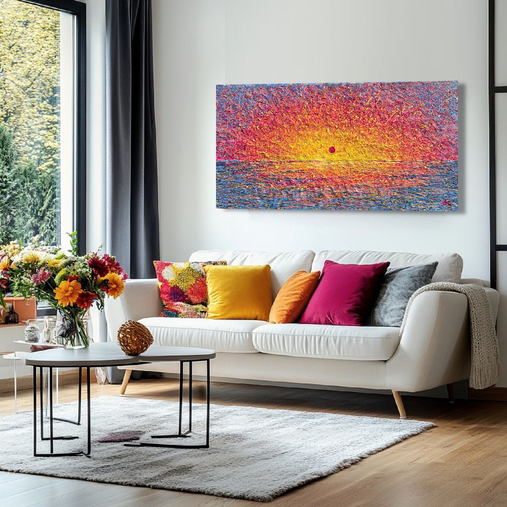 The artwork (Blazing Horizon by Nadin Antoniuk) is available for pickup at BelArt Gallery in Brussels, Belgium, or it can be delivered to the address of your choice within 2 to 3 weeks after your order is confirmed. The artwork is insured during transportation, so there’s no risk. Origin: Belgium.
