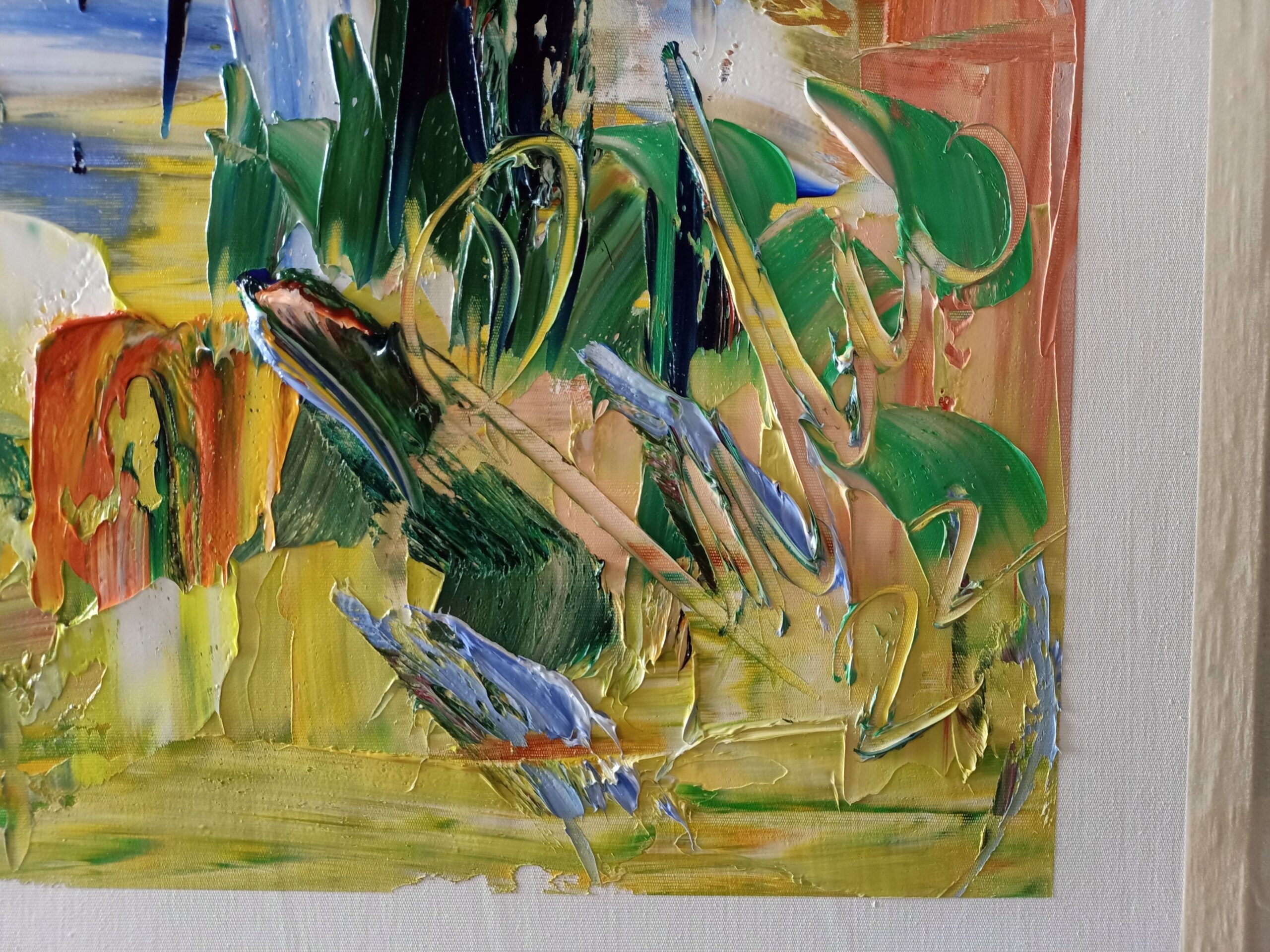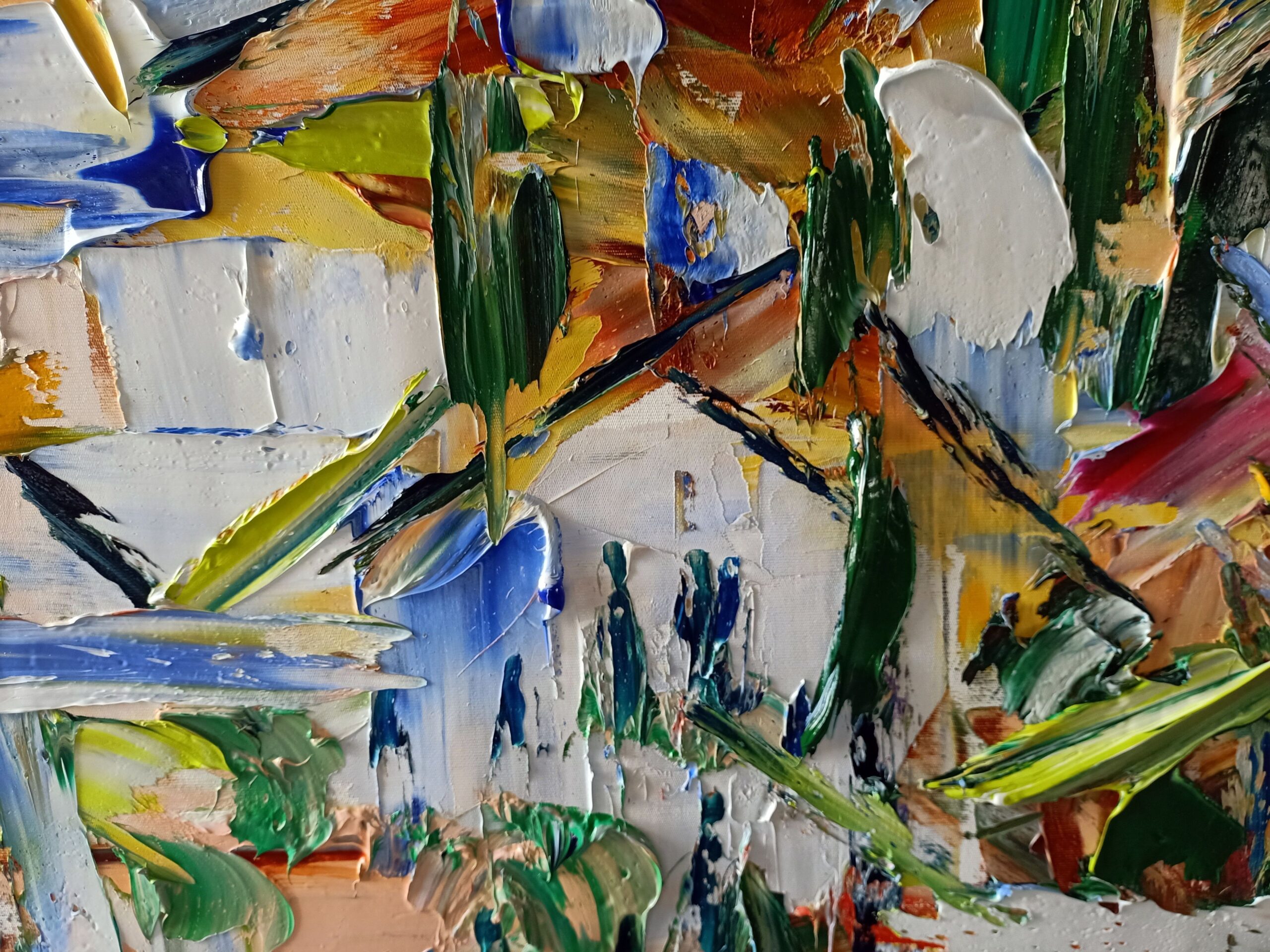 My painting is fast, to consume quickly, but with a prolonged visual aftertaste that merges and changes each time you observe the work. The purity of the pigments applied invites the observer to stare at the work to begin to see the colors dance and convey the emotion.