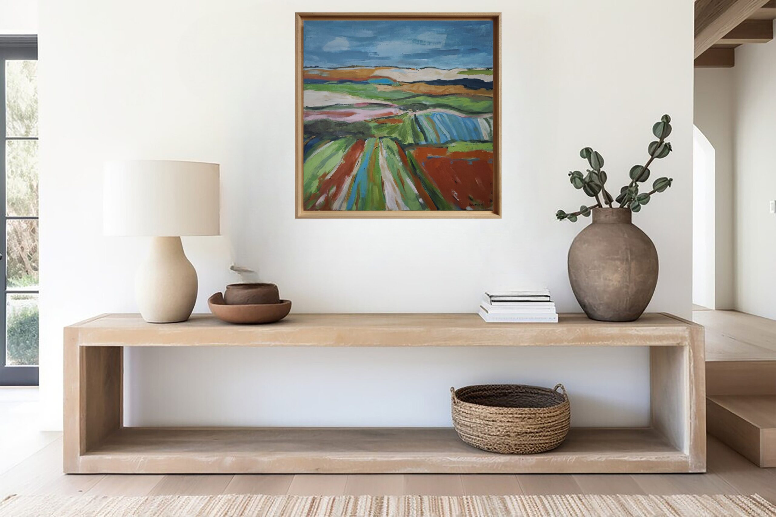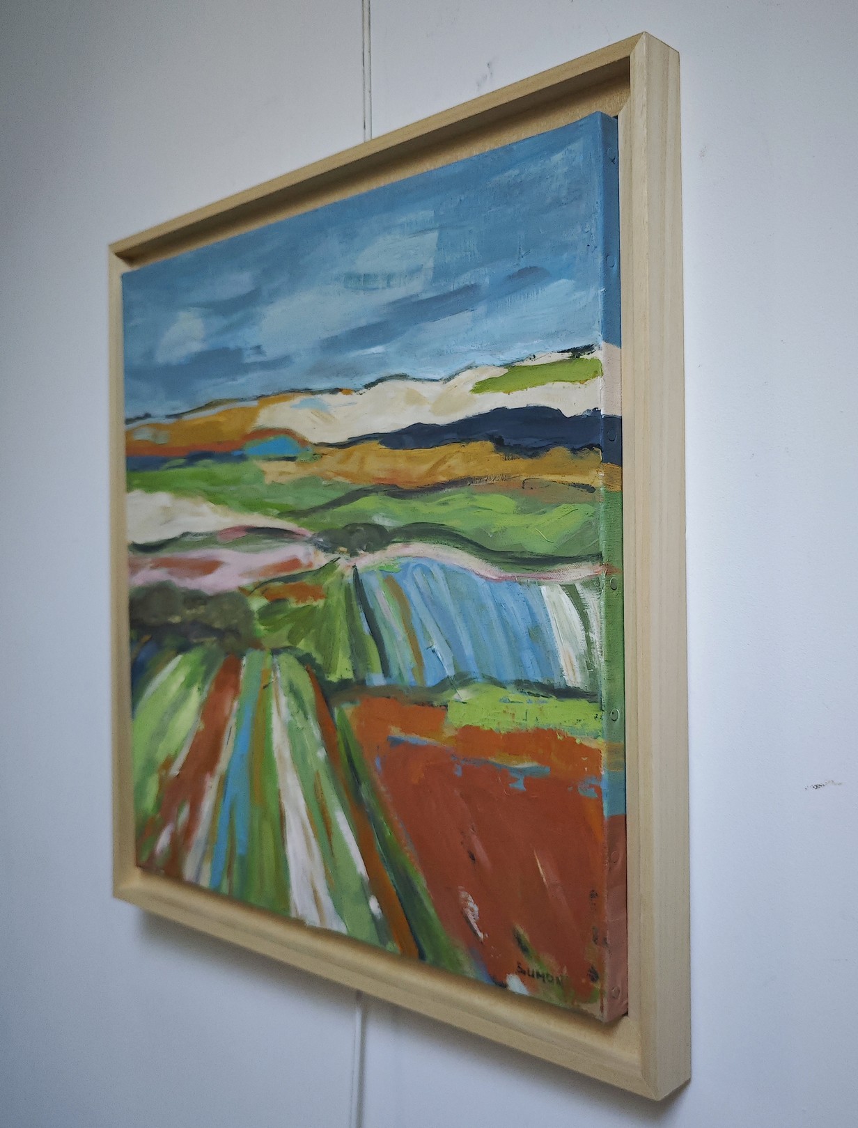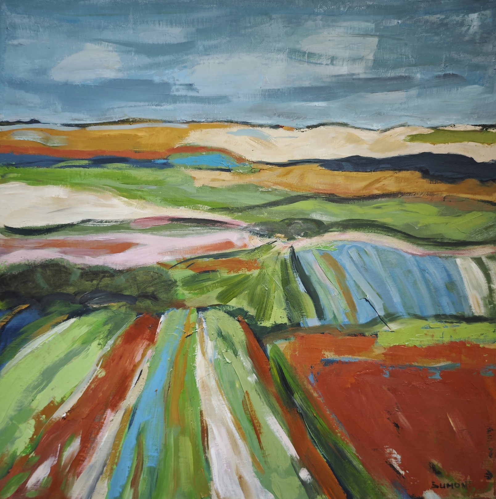 Cadence Pastorale by Sophie Dumont captures the quiet rhythm of the countryside, offering a moment of peace within a vast landscape. Through expressive brushstrokes and a vibrant yet natural palette, Dumont evokes rolling hills and open skies with a painterly style that blends representation with abstract expression. The sense of movement, wind through the grass, drifting clouds, brings the scene to life, while the textured art adds depth, playing with light and shadow. This piece celebrates nature’s simple beauty, inviting viewers to linger and explore. Discover more of Dumont’s work and her distinctive approach to the landscape.
