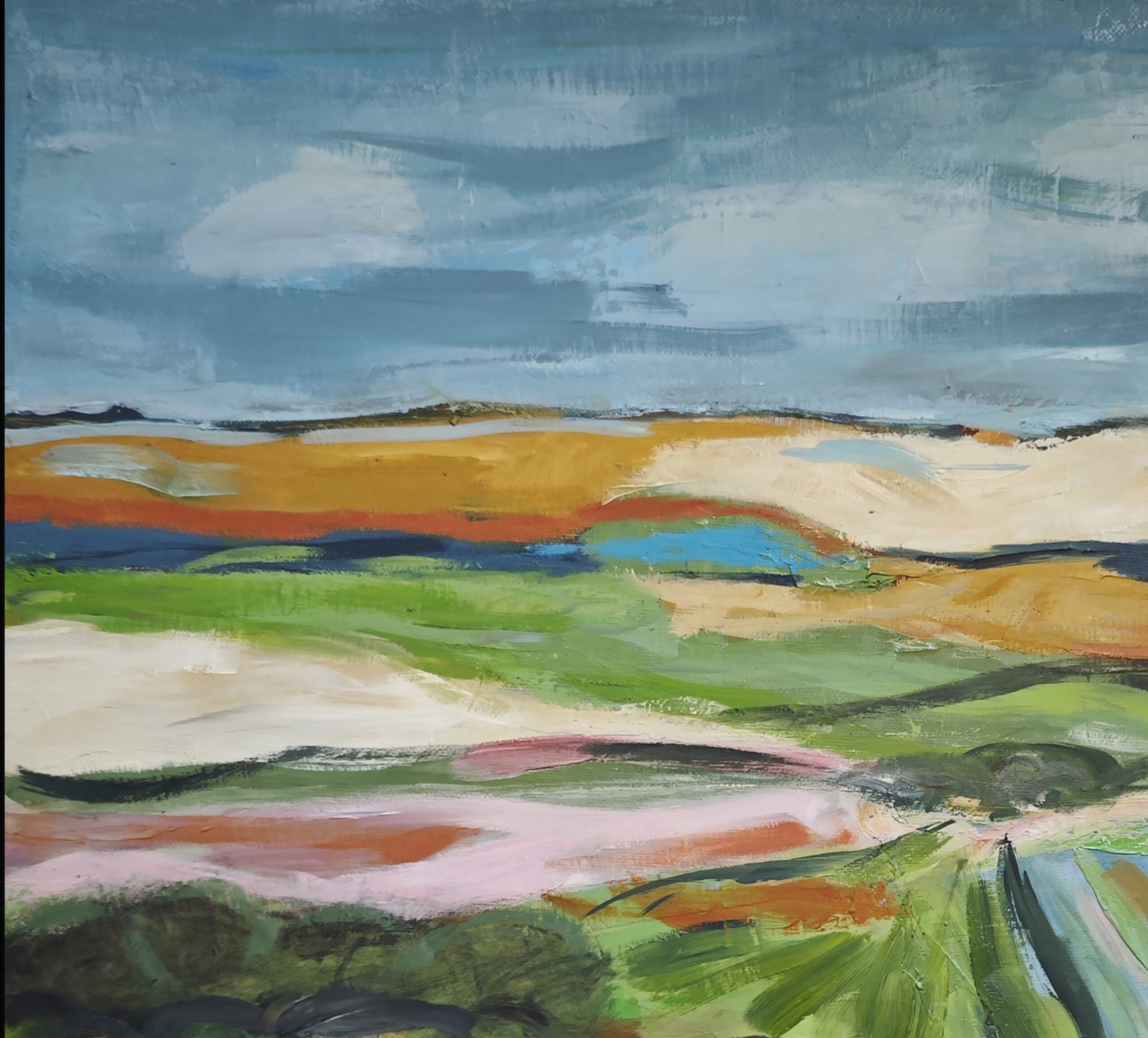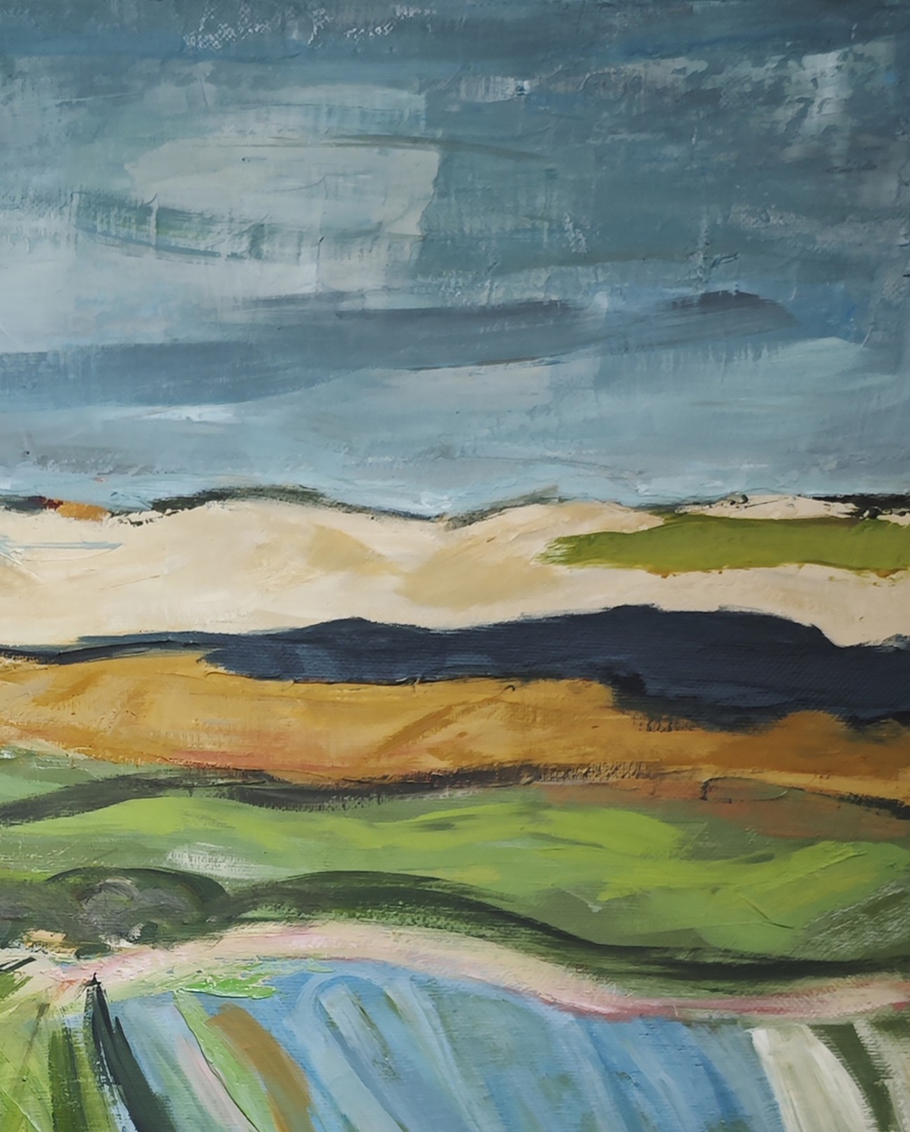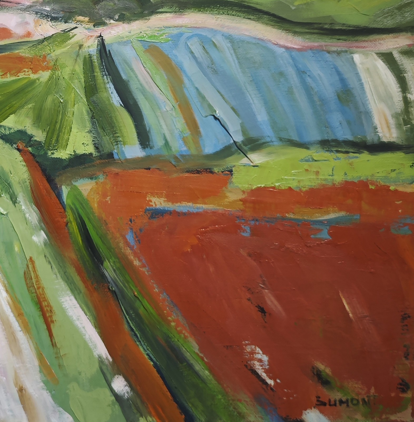 Cadence Pastorale by Sophie Dumont captures the quiet rhythm of the countryside, offering a moment of peace within a vast landscape. Through expressive brushstrokes and a vibrant yet natural palette, Dumont evokes rolling hills and open skies with a painterly style that blends representation with abstract expression. The sense of movement, wind through the grass, drifting clouds, brings the scene to life, while the textured art adds depth, playing with light and shadow. This piece celebrates nature’s simple beauty, inviting viewers to linger and explore. Discover more of Dumont’s work and her distinctive approach to the landscape.