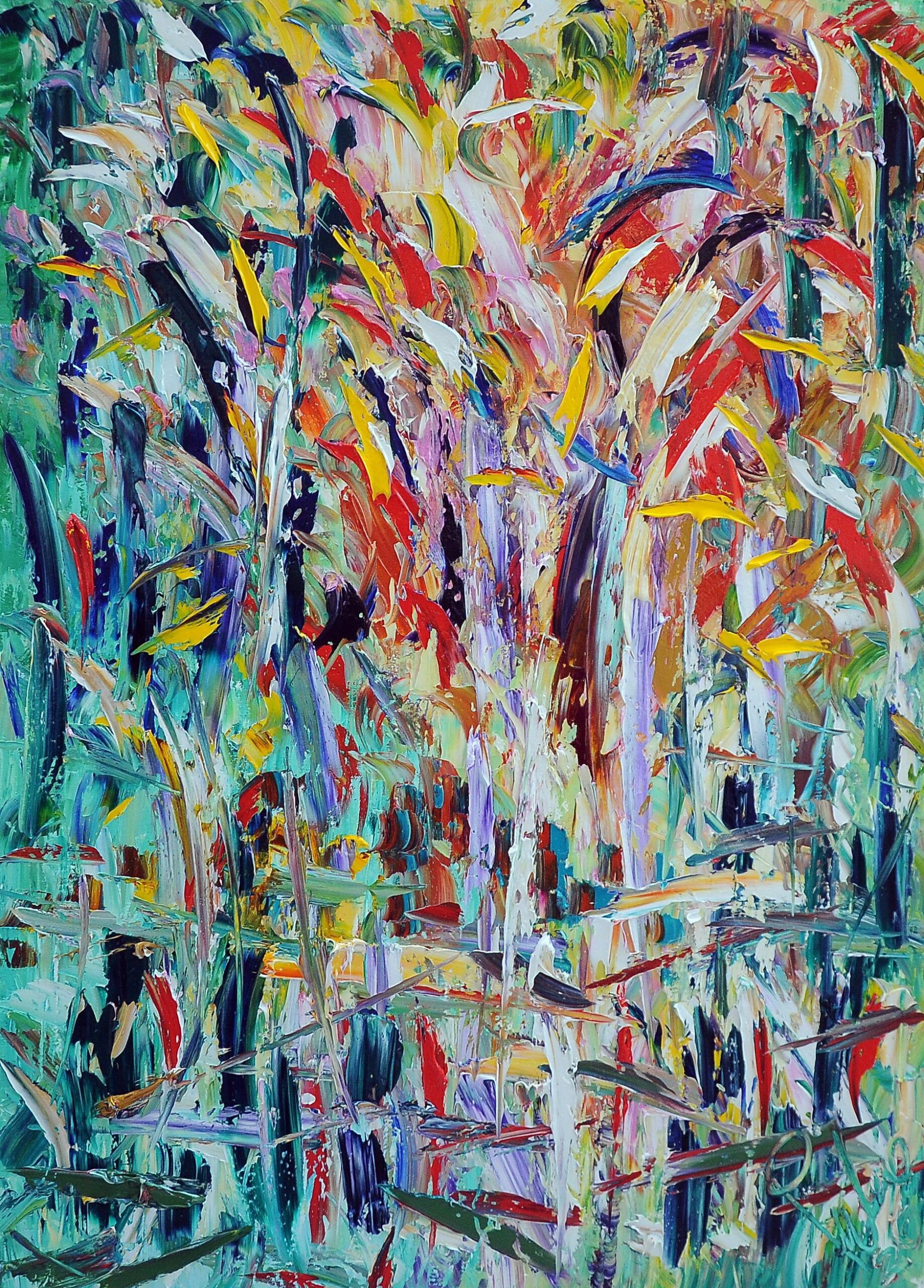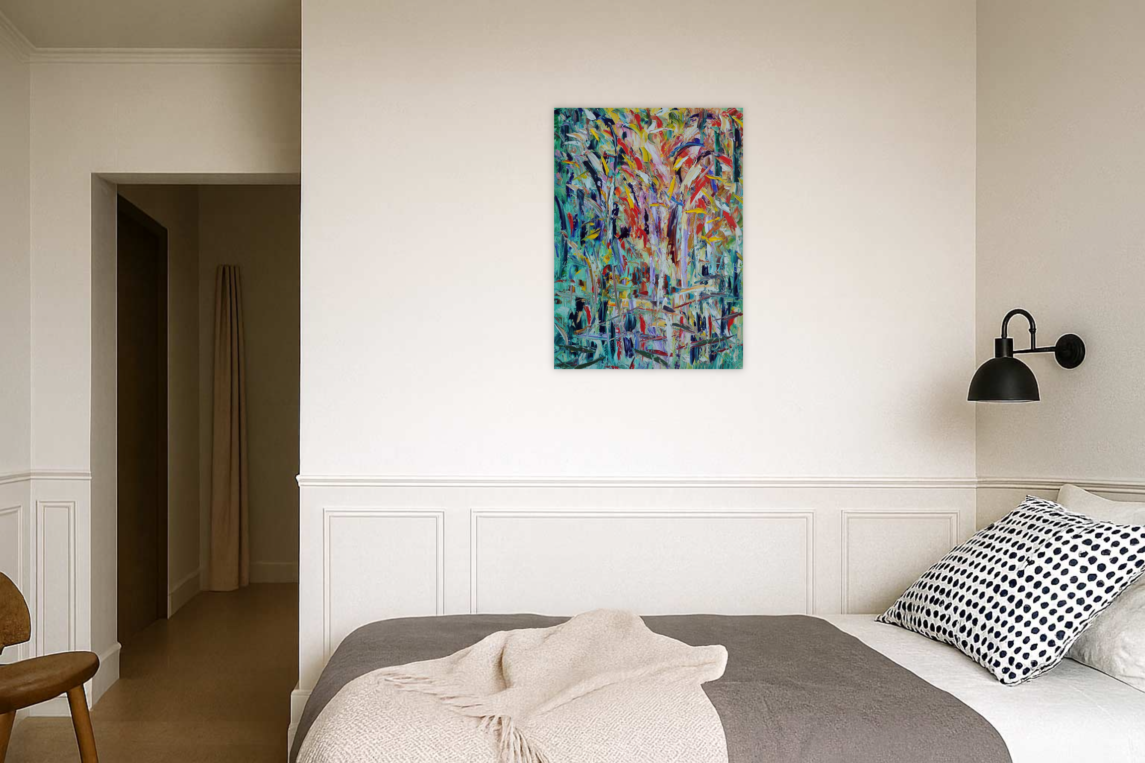 I use the colors straight from the tube. Professional colors were used for the creation of the work. The paint is treated with a final varnish for UV protection.