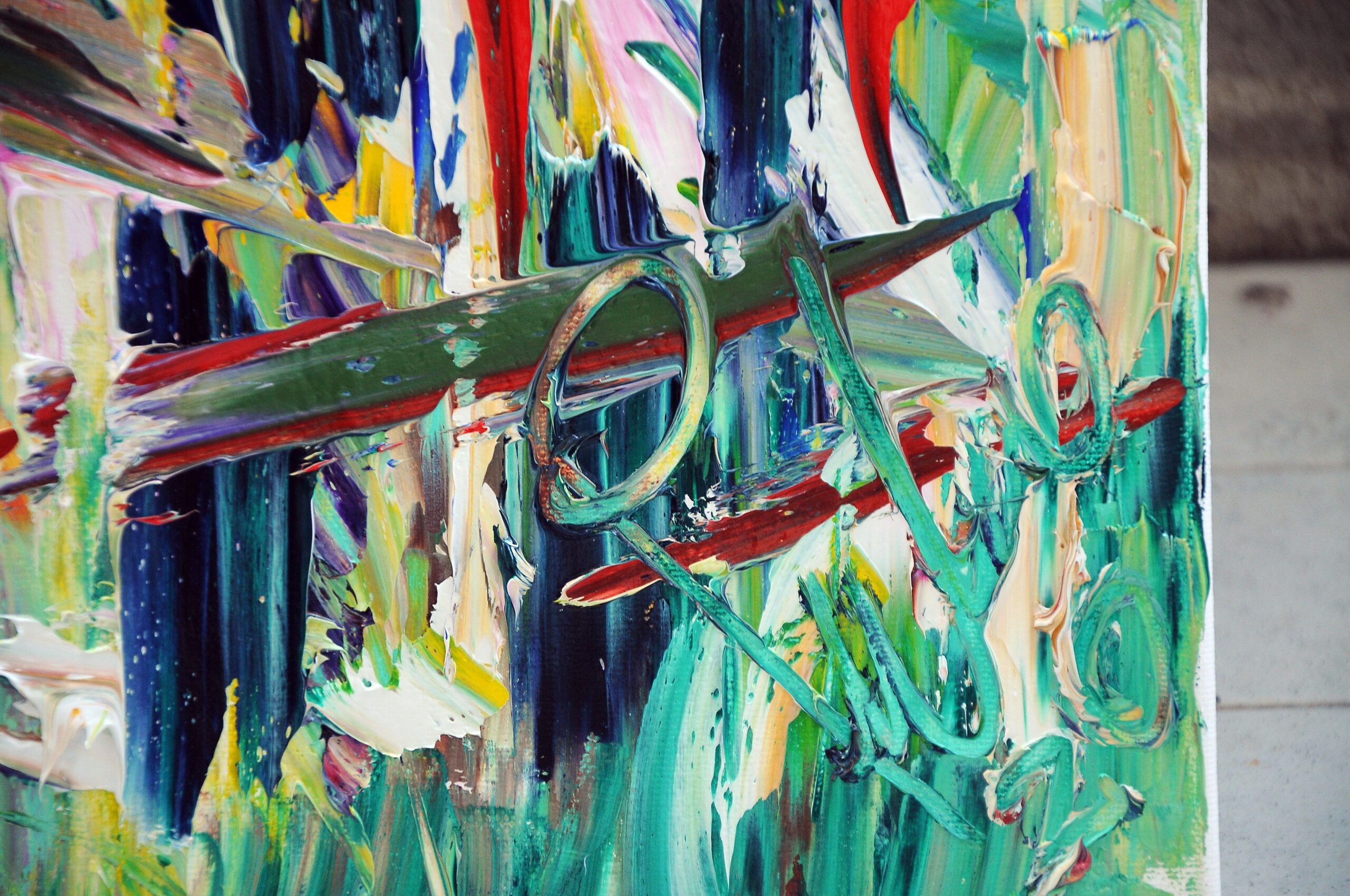 The feeling of freedom that inspires painting provokes deep and intense emotions that manifest in a creative process that starts from his unconscious to reach the viewer through an art form difficult to find in contemporary Italian art. The shapes, lines, colors create a disruptive dynamism, imbued with intense vigor, but balanced in its dimension. Refined communication, the result of a synthesis between instinct and reason and conscience.