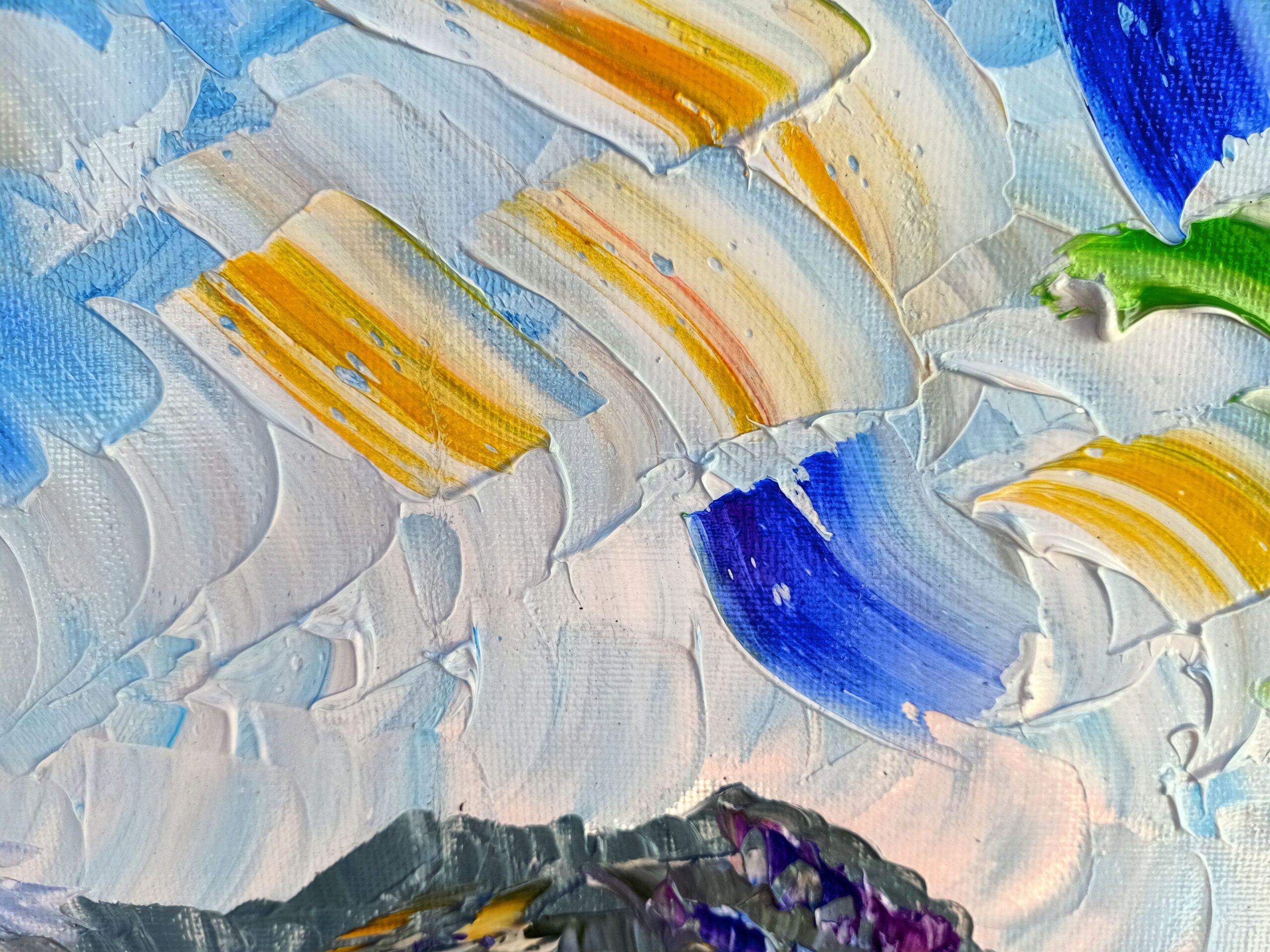 Professional colors were used for the realization of the work. The paint is treated with a final varnish for UV protection. Photos may differ from the original depending on the monitor displaying them.