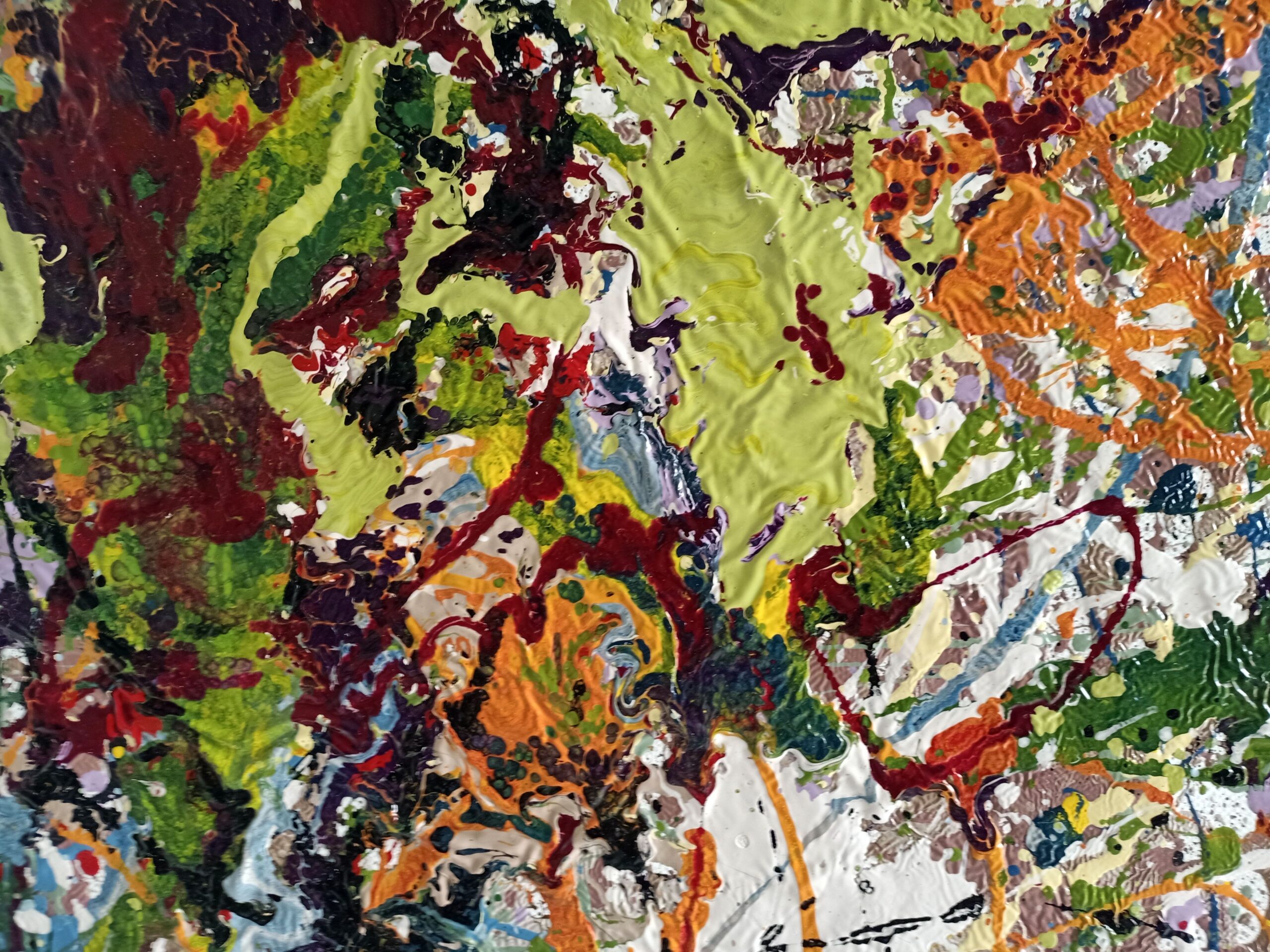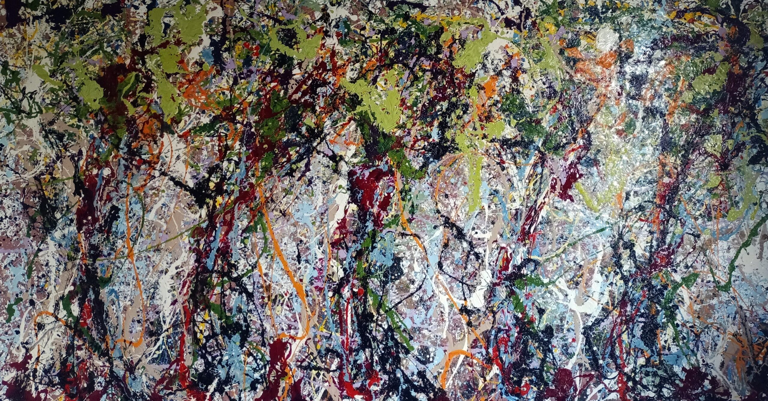 “Custodi del Tempo” è un’opera affascinante e incantevole che unisce in sé l’energia del dripping di Pollock e la magia di un mondo incantato, ricco di alberi e fiabe. L’artista crea un’atmosfera immemorabile, evocando un paesaggio dove alberi giganti fungono da guardiani del tempo in un regno incantato.