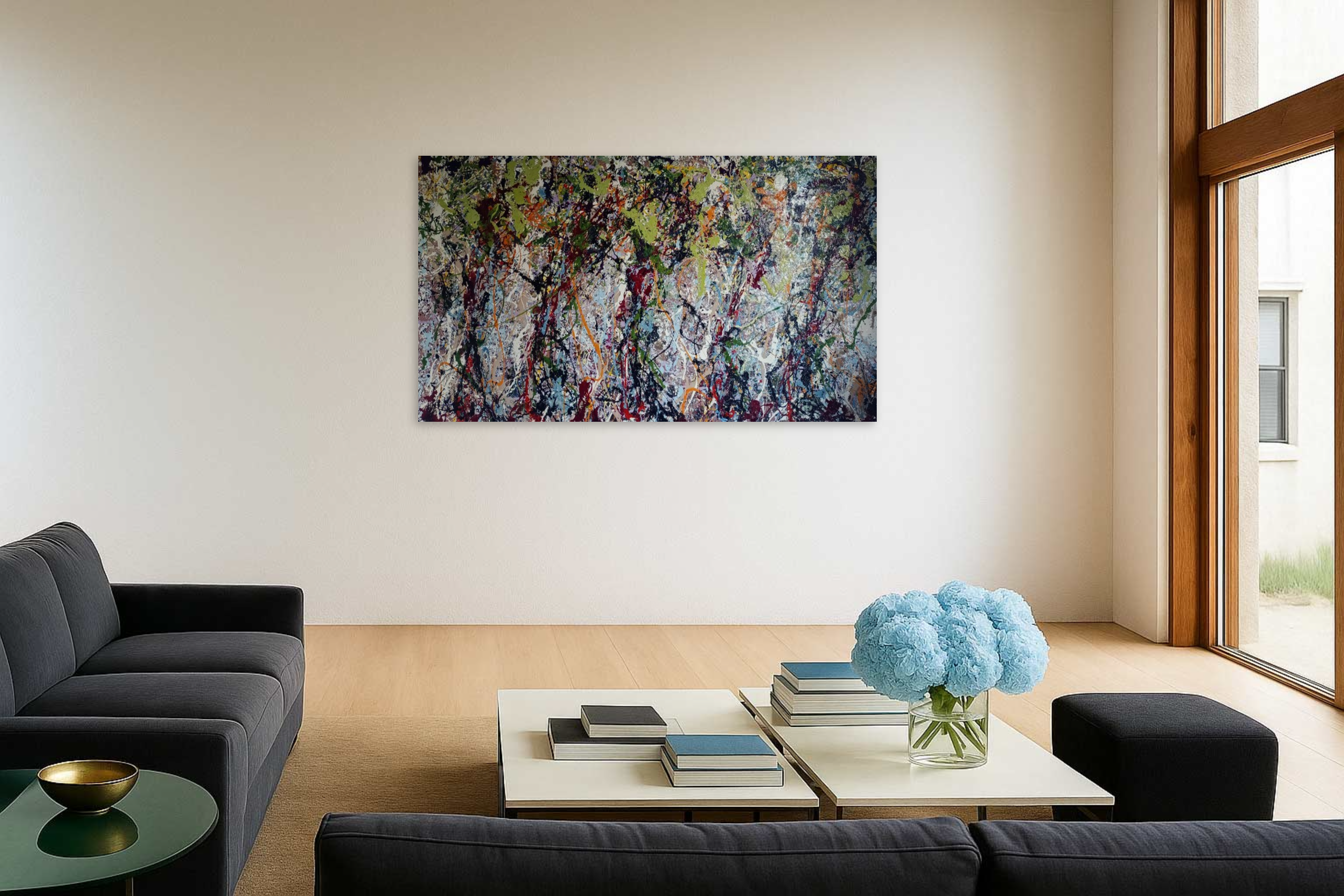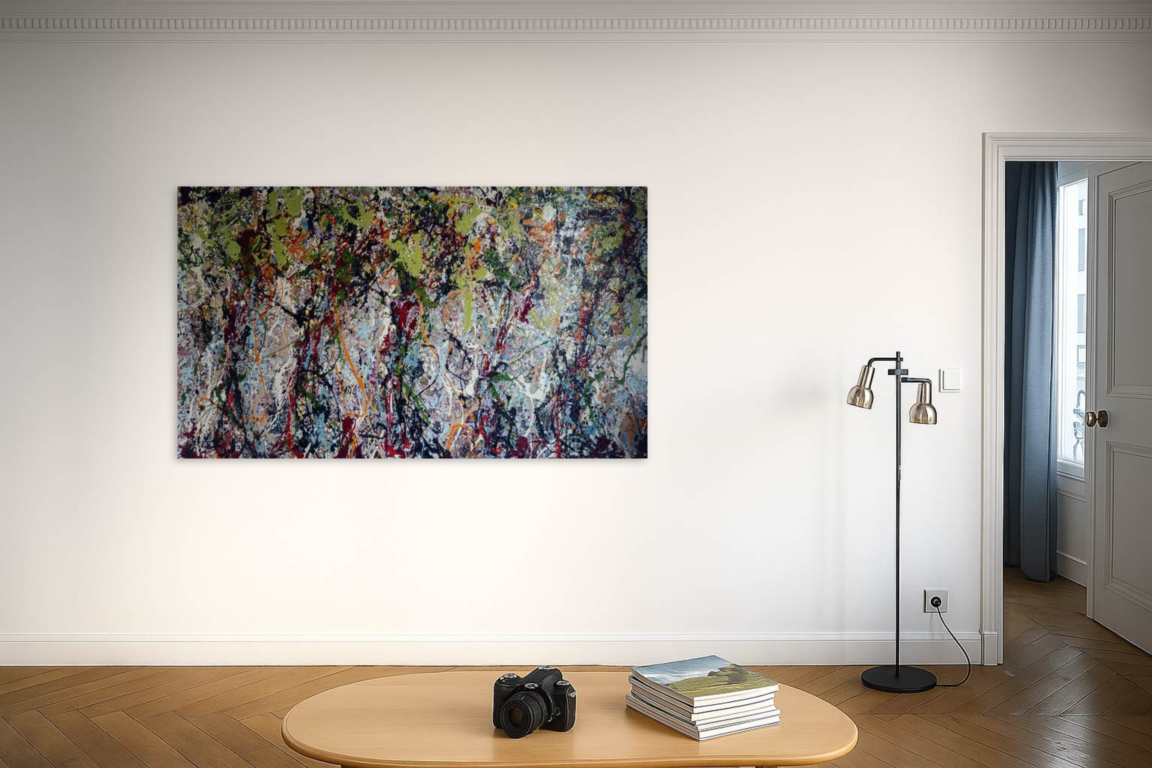 Questa opera d’arte è perfetta per chi desidera aggiungere un tocco di magia e mistero alla propria collezione, o per coloro che sono affascinati dall’estetica di Pollock e dal tema degli alberi come simbolo di saggezza e forza.