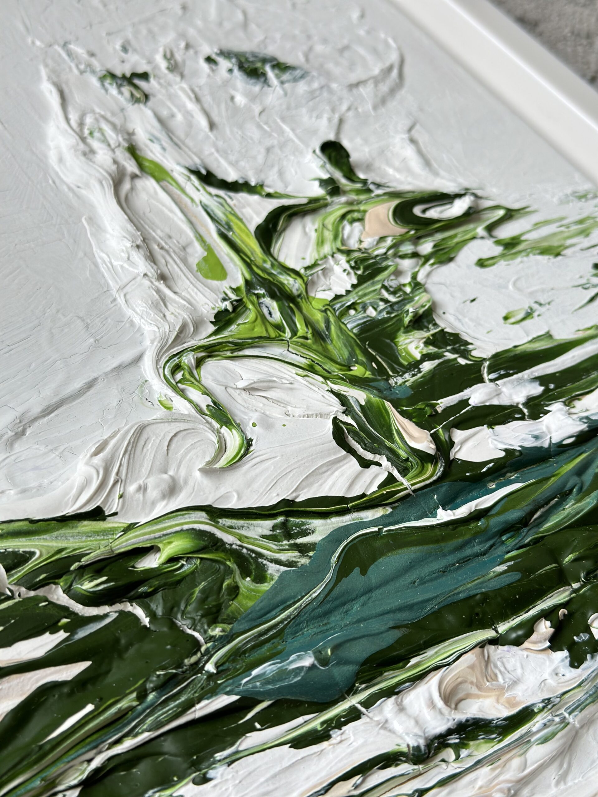 Painted with brushes and palette knife.