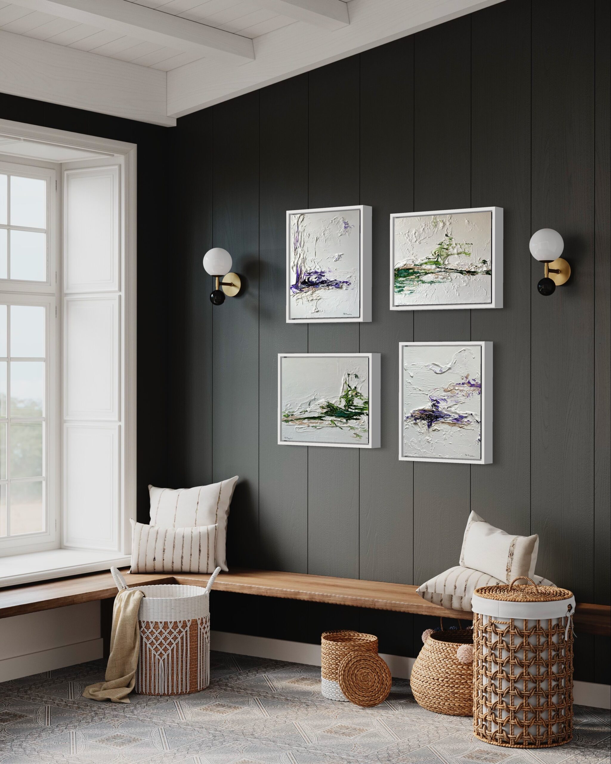 This serie is about sensitivity to our surroundings…. ethereal introspective landscape opposed to realistic one . My goal is to let the viewer completes the painting with what is personally meaningful creating space for his memories and his unexpressed voice.