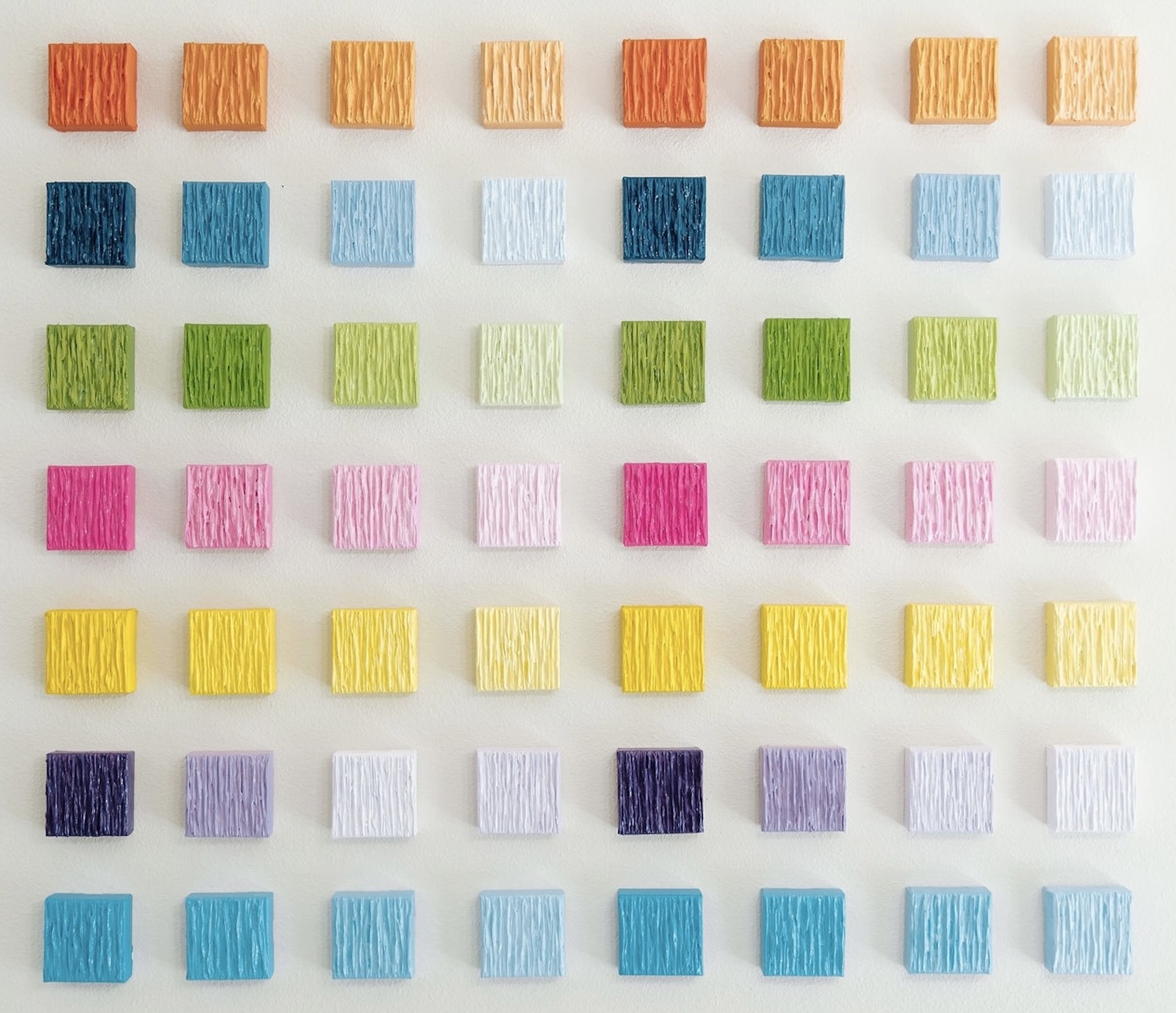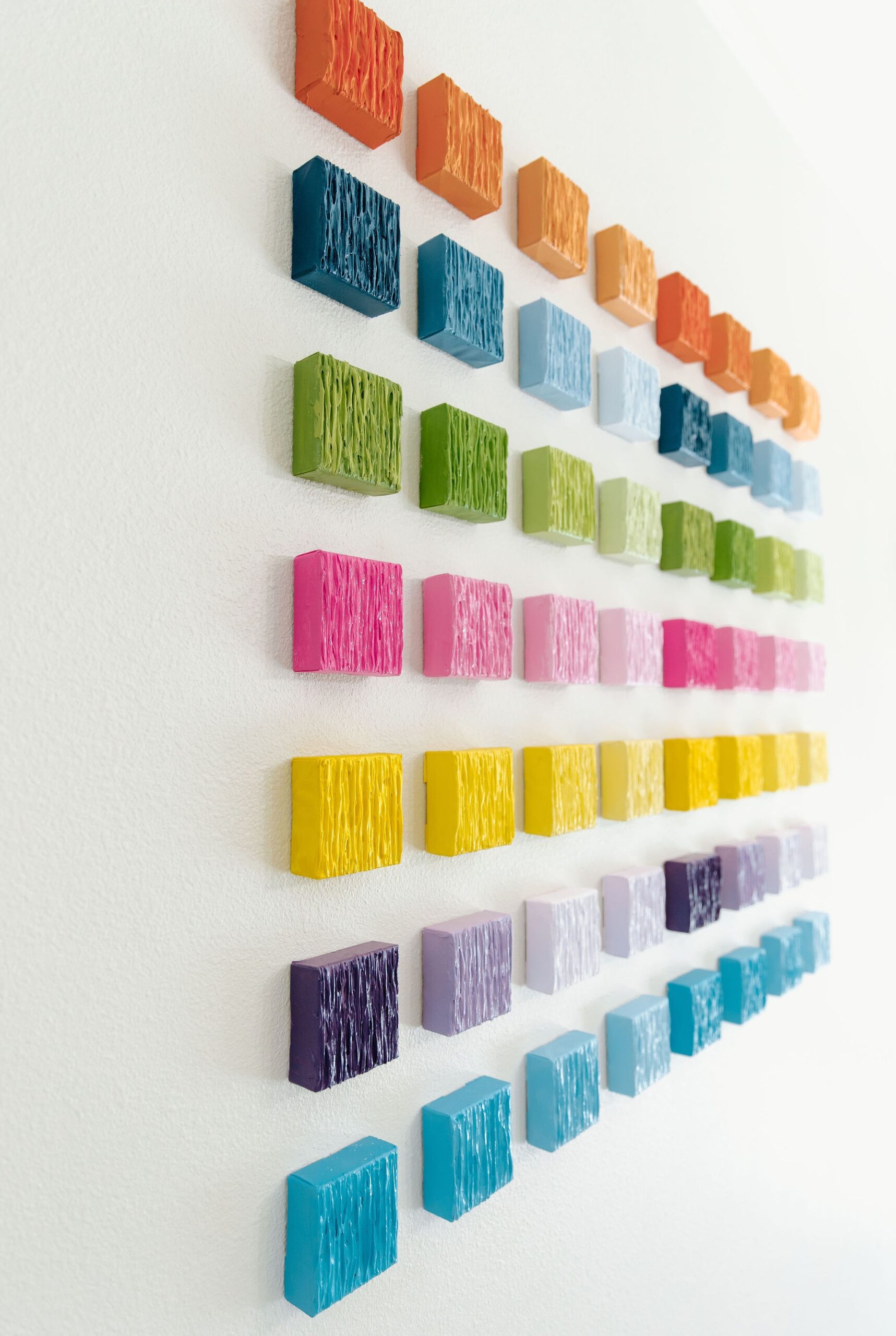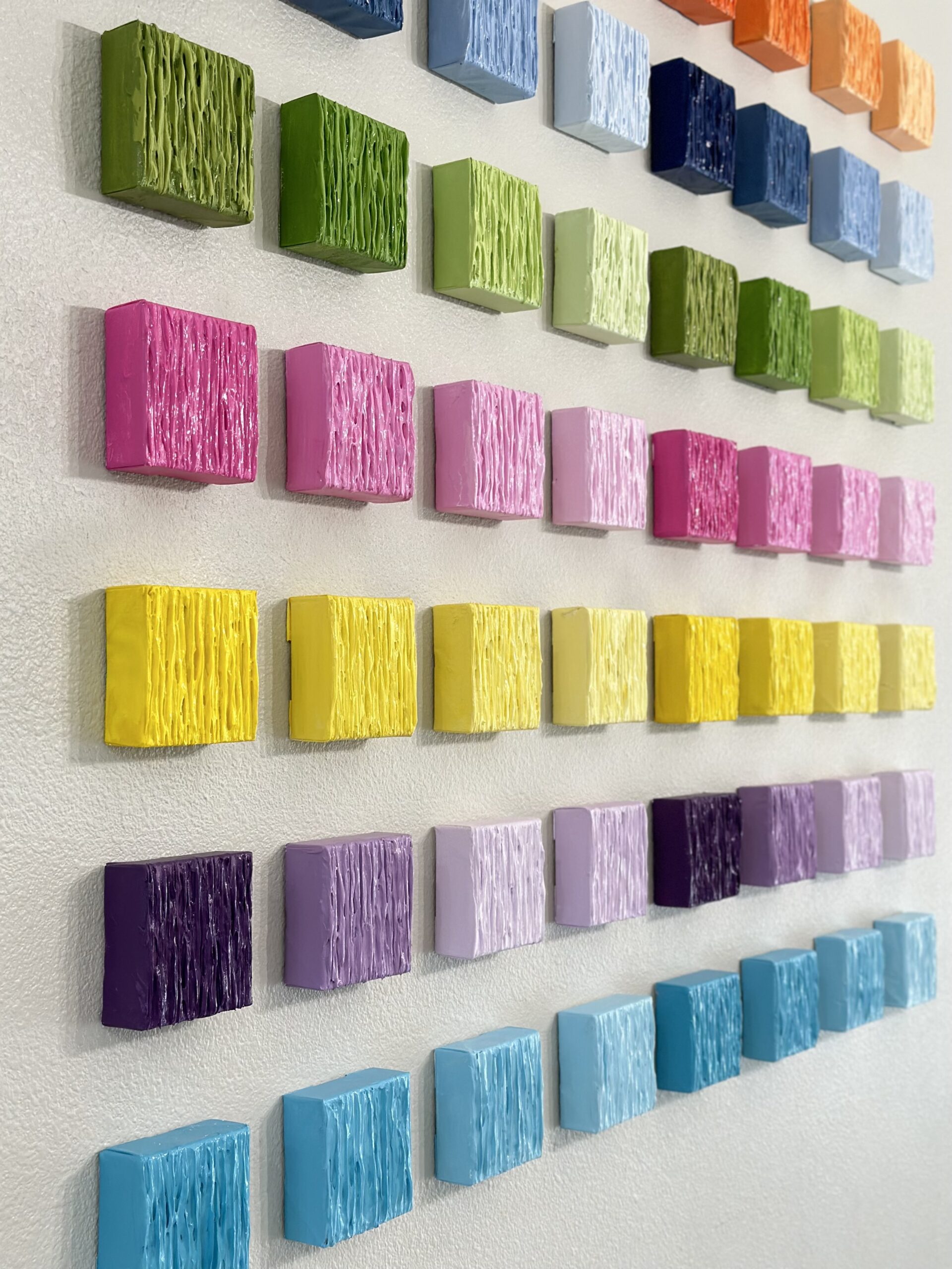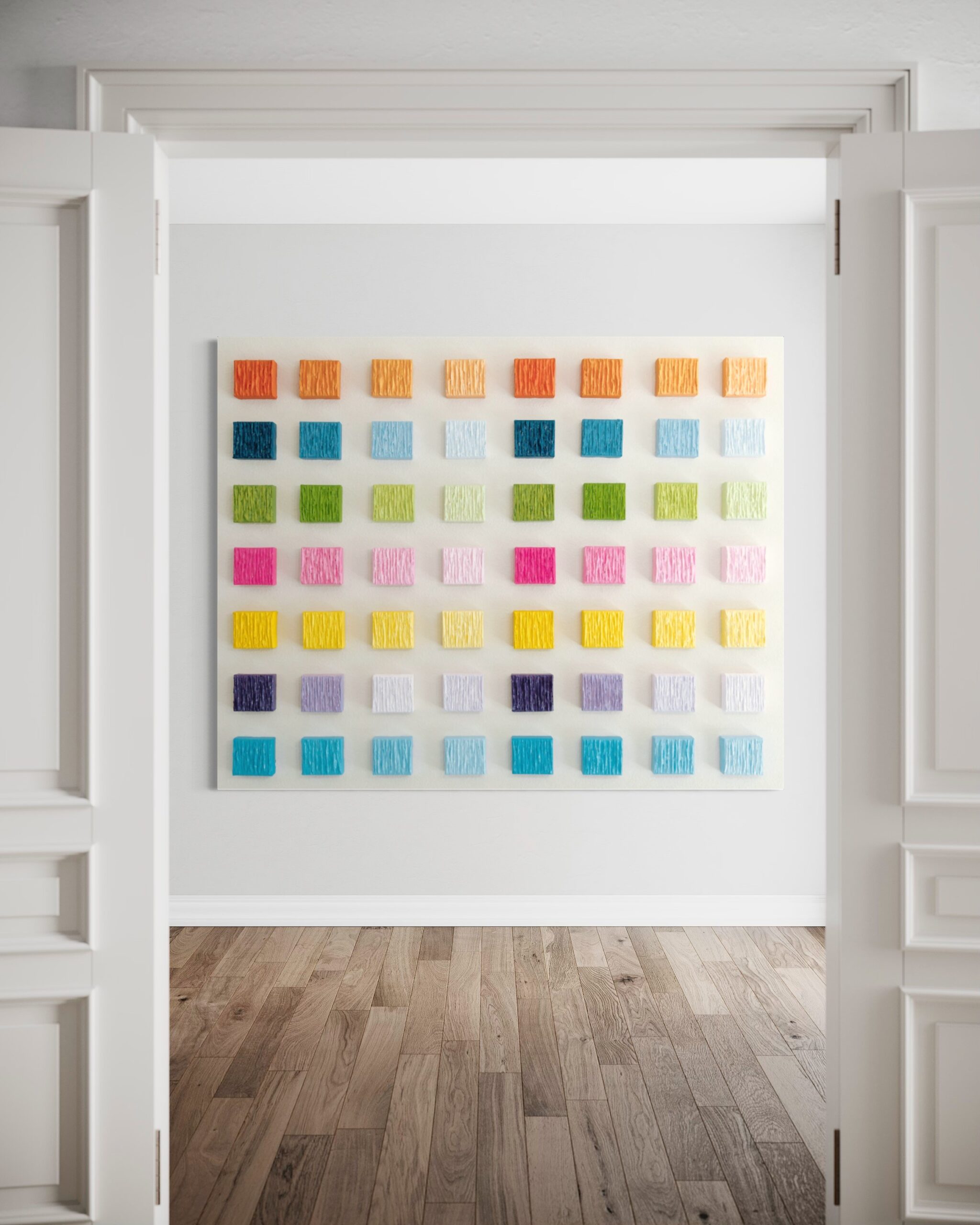 Composition of 56 paintings- 4 x 4 in. The area the artwork is displayed is 48 x 54 in.