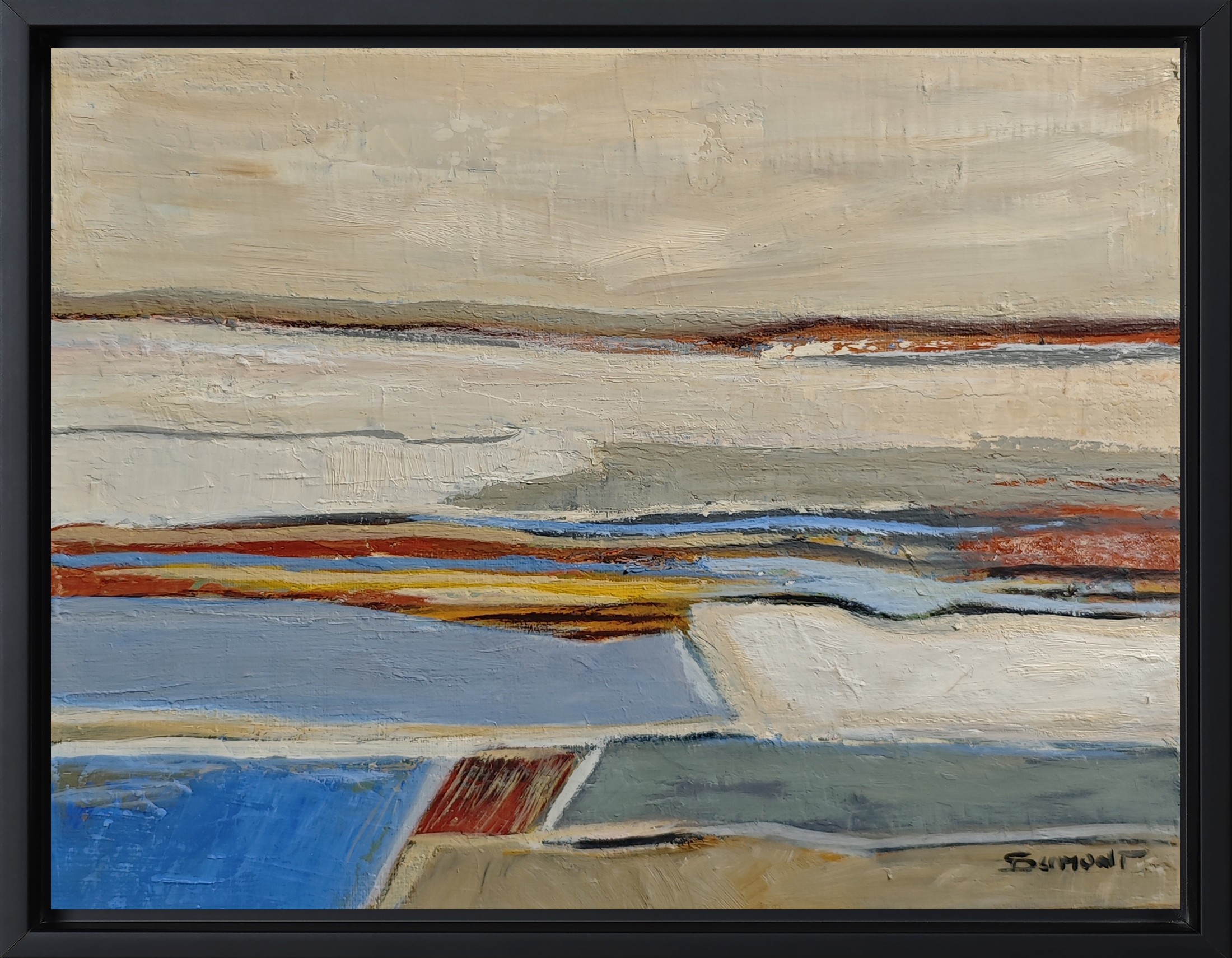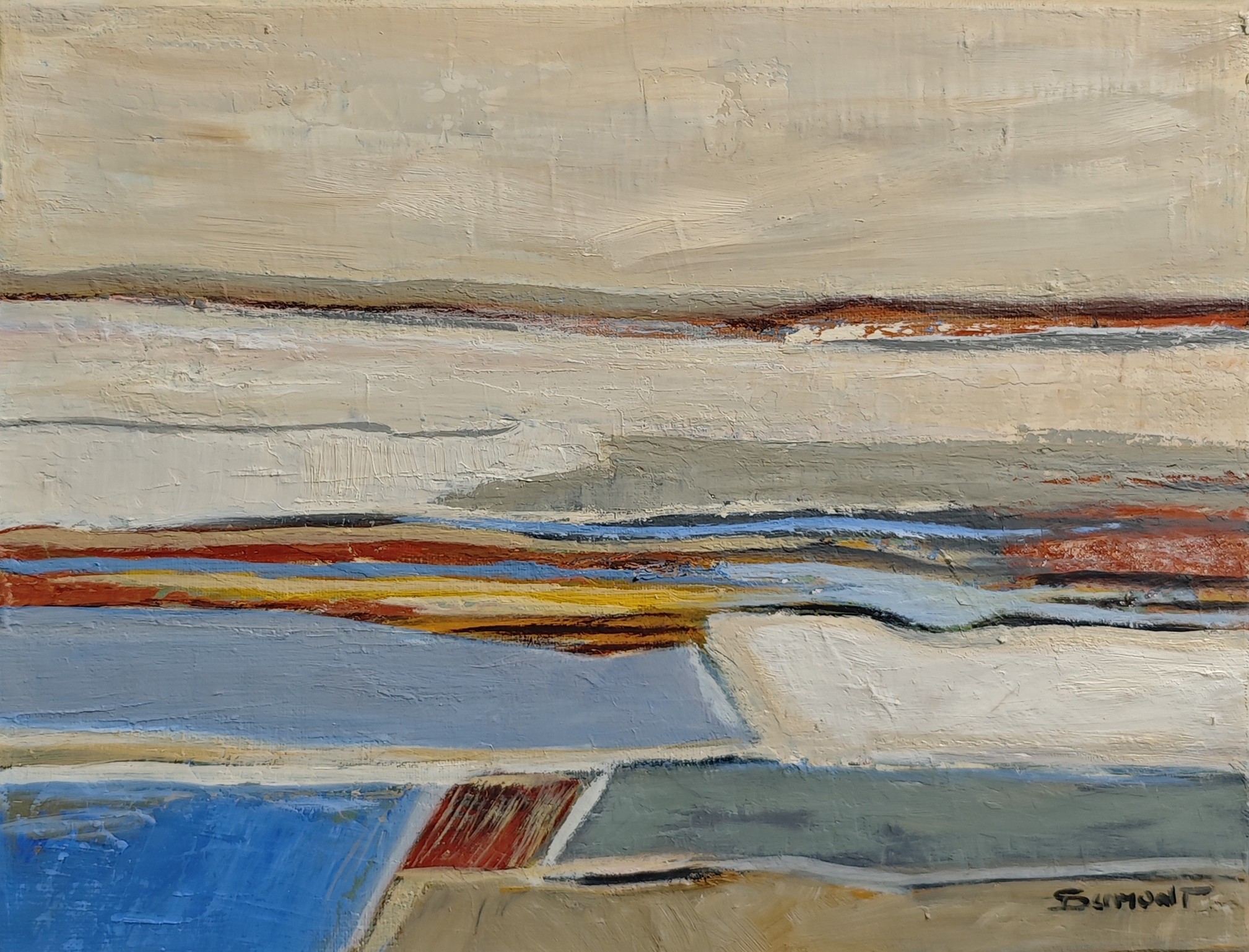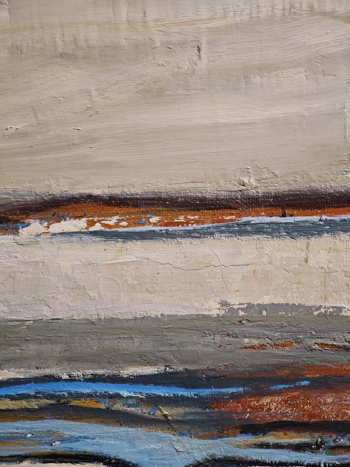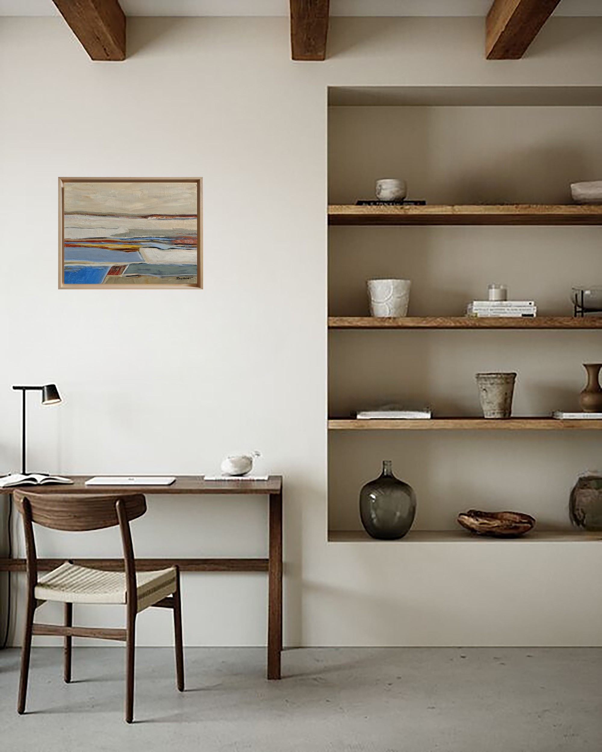 In this work, the viewer is invited to immerse himself in a landscape that is gradually revealed, each nuance and each line contributing to weaving a complex web of emotions and sensations. The dominant shades of beige, blue and ocher mix and overlap, creating suggestive contrasts and plays of light that evoke distant horizons and changing atmospheres.