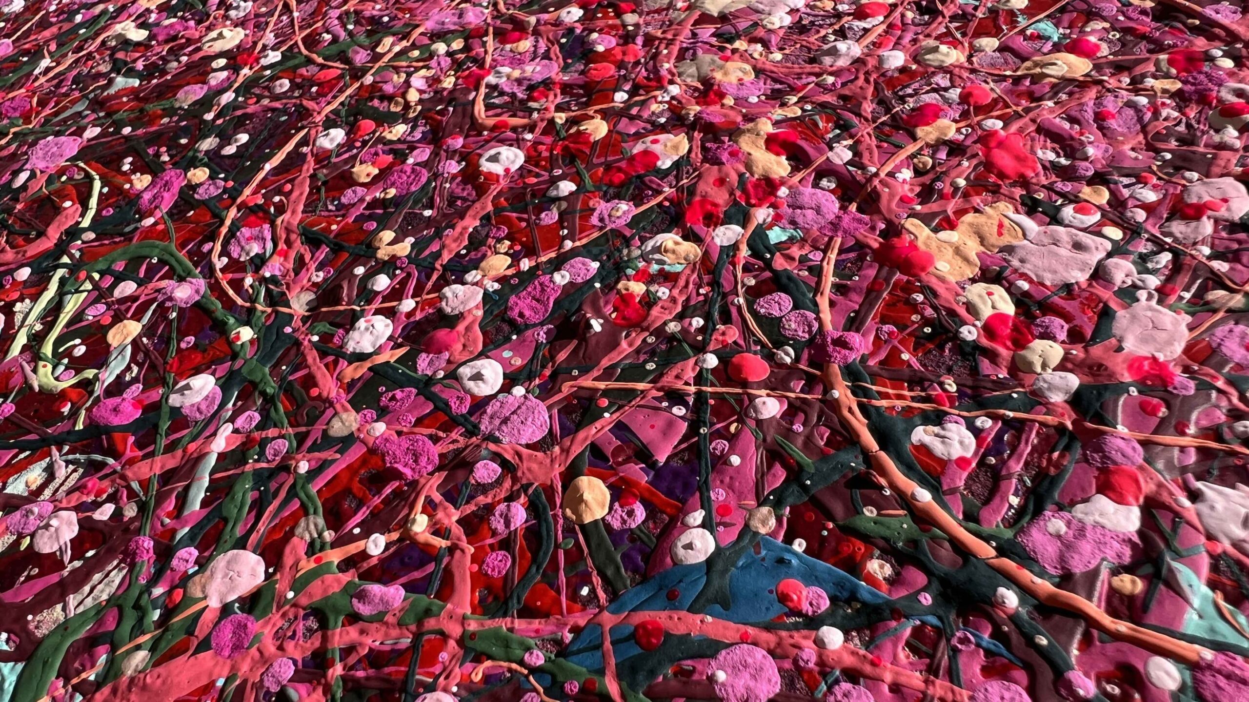 Painting style – the paint is applied in threads. The threads of paint seem to intertwine, creating their own canvas. Painting is made using multi-layer paint technique. A million multi-colored splashes dry before each subsequent coat of a colored the threads of paint is applied. In general, the painting has more then 50 layers of the application of colorful splashes.
