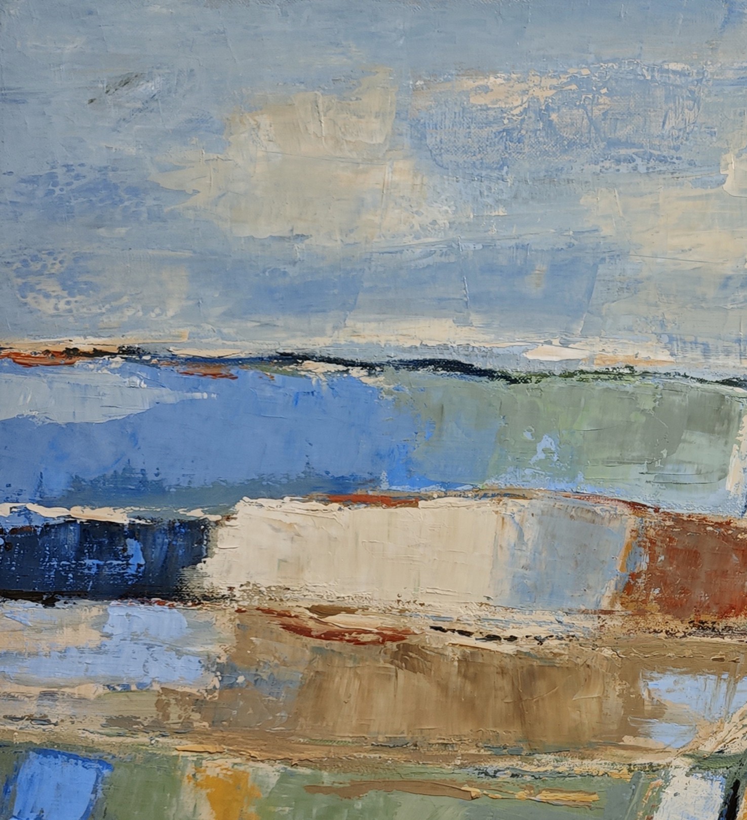 A professional painter based in Normandy, Sophie Dumont develops a sensitive and structured body of work, rooted in the memory of landscapes and the exploration of visual rhythms. Her paintings, collected internationally, oscillate between abstraction and figurative reminiscence, offering a reading of the world that is both intimate and universal.