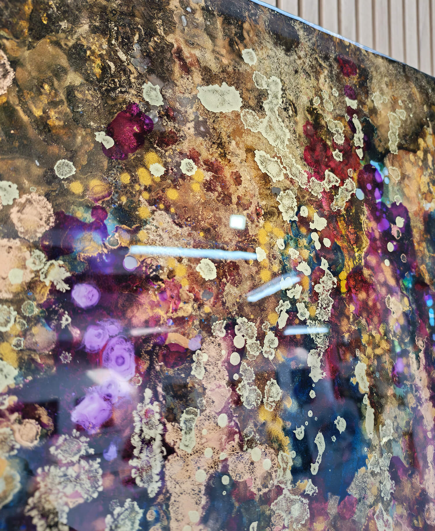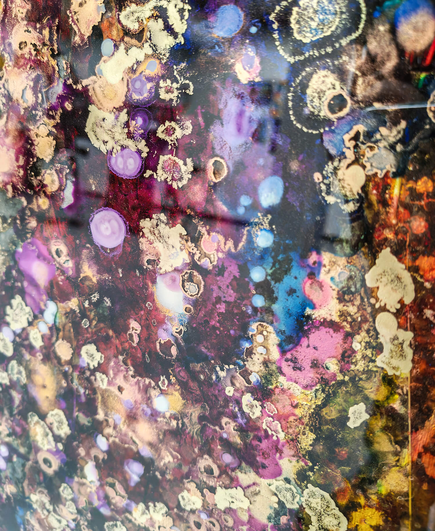 Crafted using 6-7 layers of high gloss resin, each enriched with unique pigments, gold leaf, oils, and techniques, the artwork exhibits a mesmerizing depth.It’s difficult to capture the full brilliance of colors and glossy effects in photos; additional images or videos can be provided upon request to offer a more accurate representation.