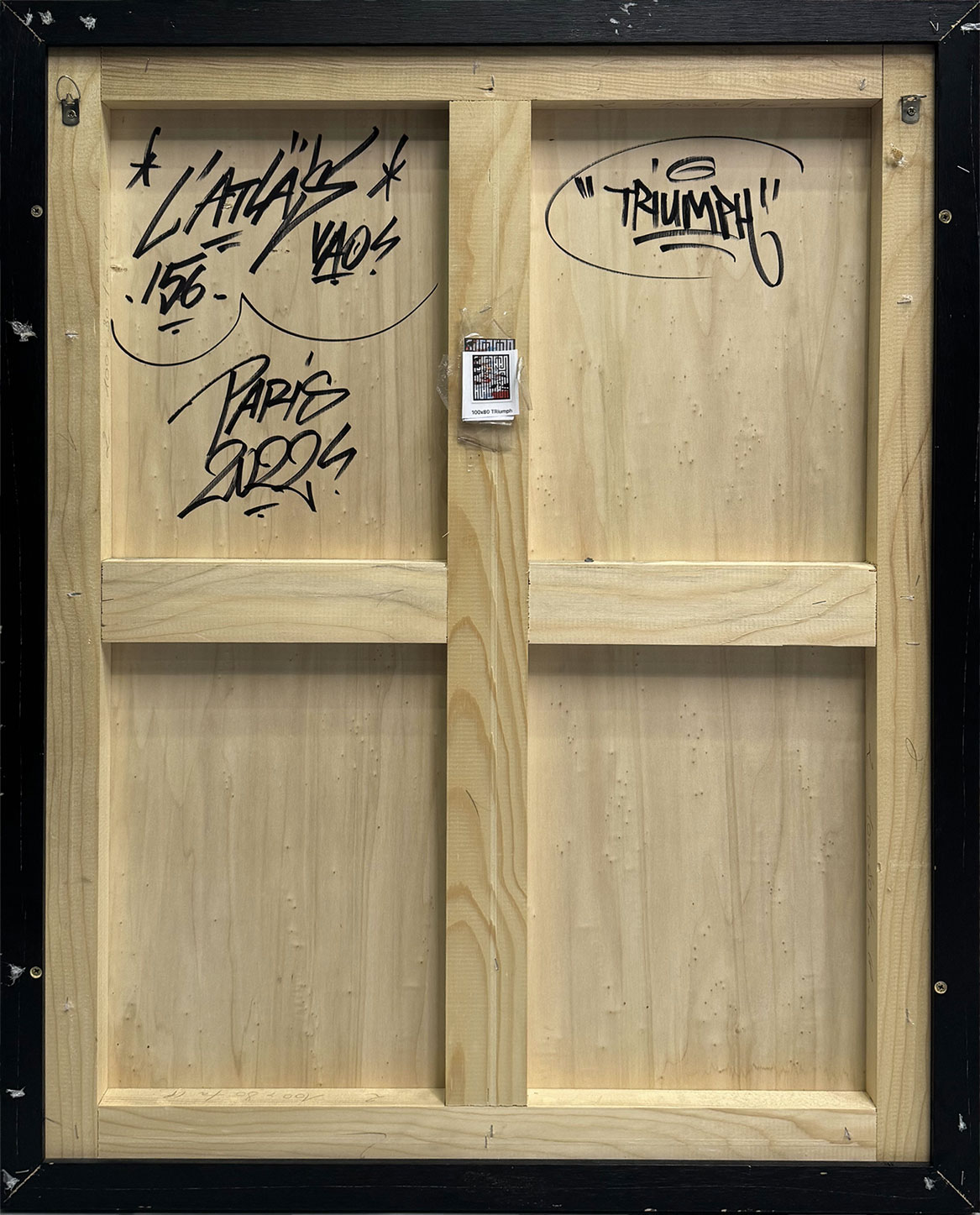 “Triumph” by L’Atlas is a vivid demonstration of how contemporary artists blend different genres and techniques to reflect complex themes such as resilience and victory. This artwork would resonate particularly well in a collection focused on modern abstract art that encapsulates elements of urban culture and philosophical contemplation.