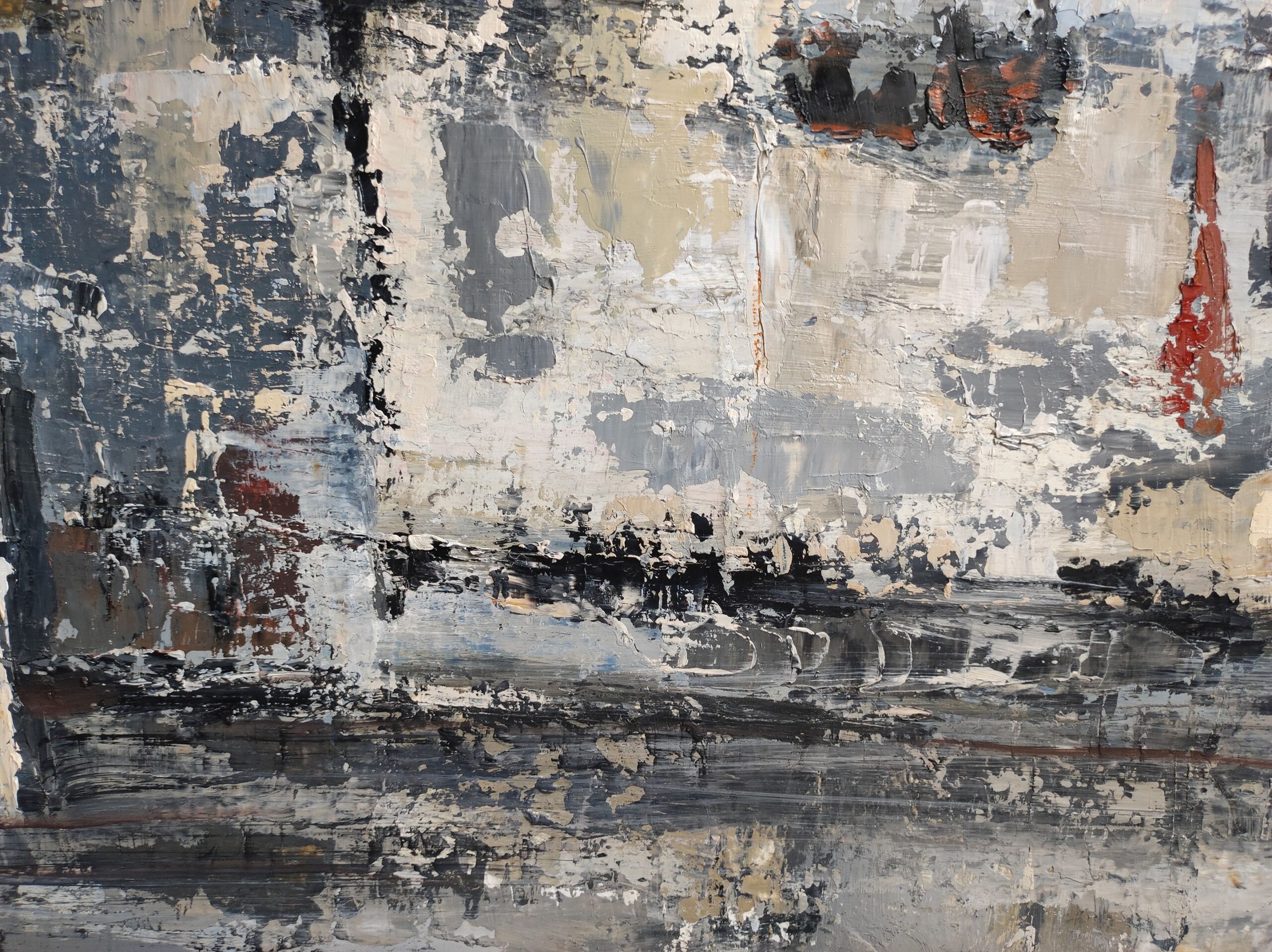 Cliffs on the sea in Upper Normandy reflecting on the water. Contrasts or color ratios are not violent, but blended into harmonious shades. The canvas barely suggests a landscape, like these cliffs, more evocative than monumental. Their dazzling beauty comes as much from the reflections of light reflected by their chalky walls, as from the perspective created by their escape on the horizon. Painting in oil and knife.Very material painting with more than thirty layers providing a vibration effect. The cliffs are mighty as is the bill. The edges of the painting are painted which allows you not to put a frame.