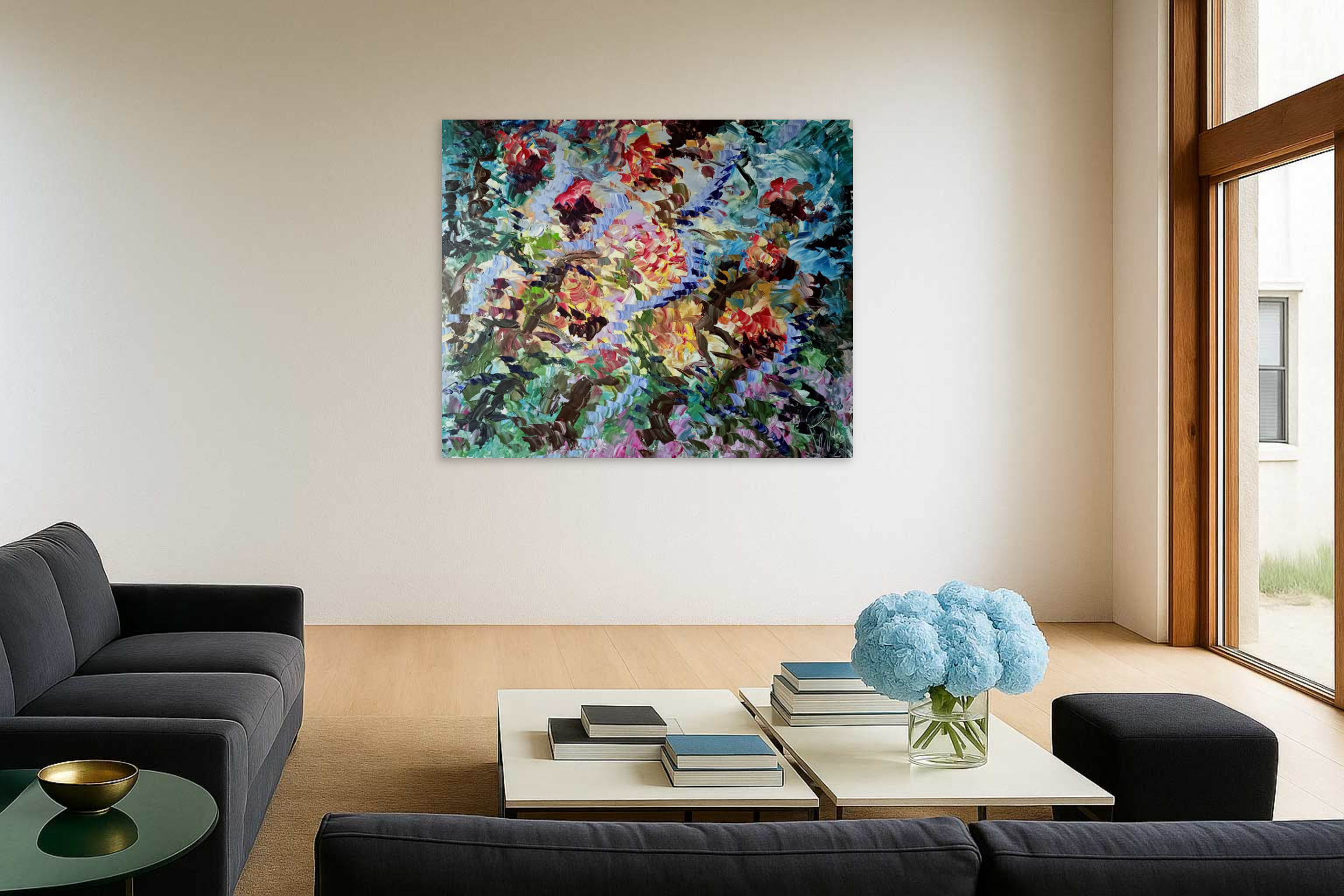 The artwork (Mondi Floreali by Antonino Puliafico) is available for pickup at BelArt Gallery in Brussels, Belgium, or it can be delivered to the address of your choice within 2 to 3 weeks after your order is confirmed. The artwork is insured during transportation, so there’s no risk. Origin: Belgium.