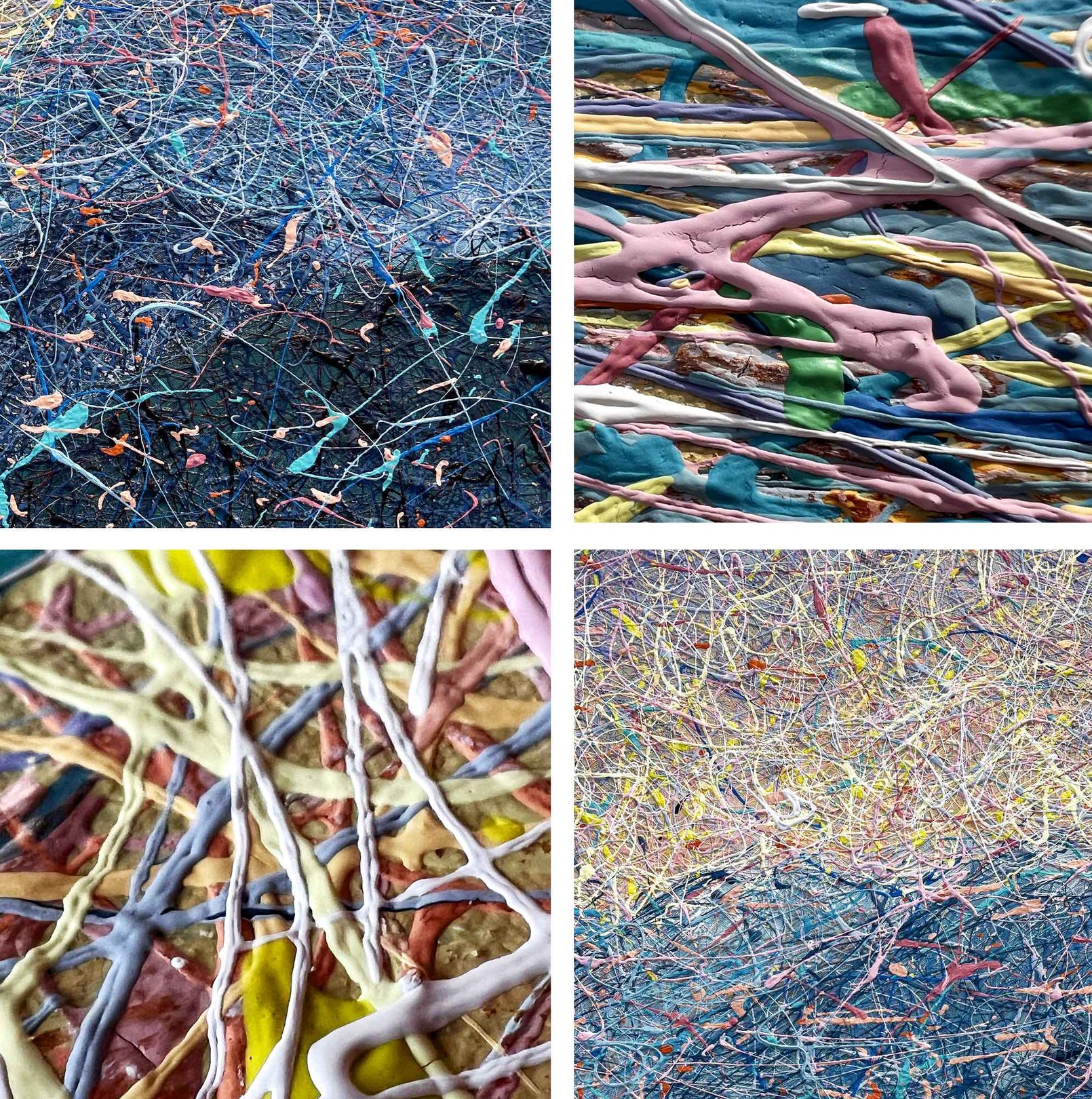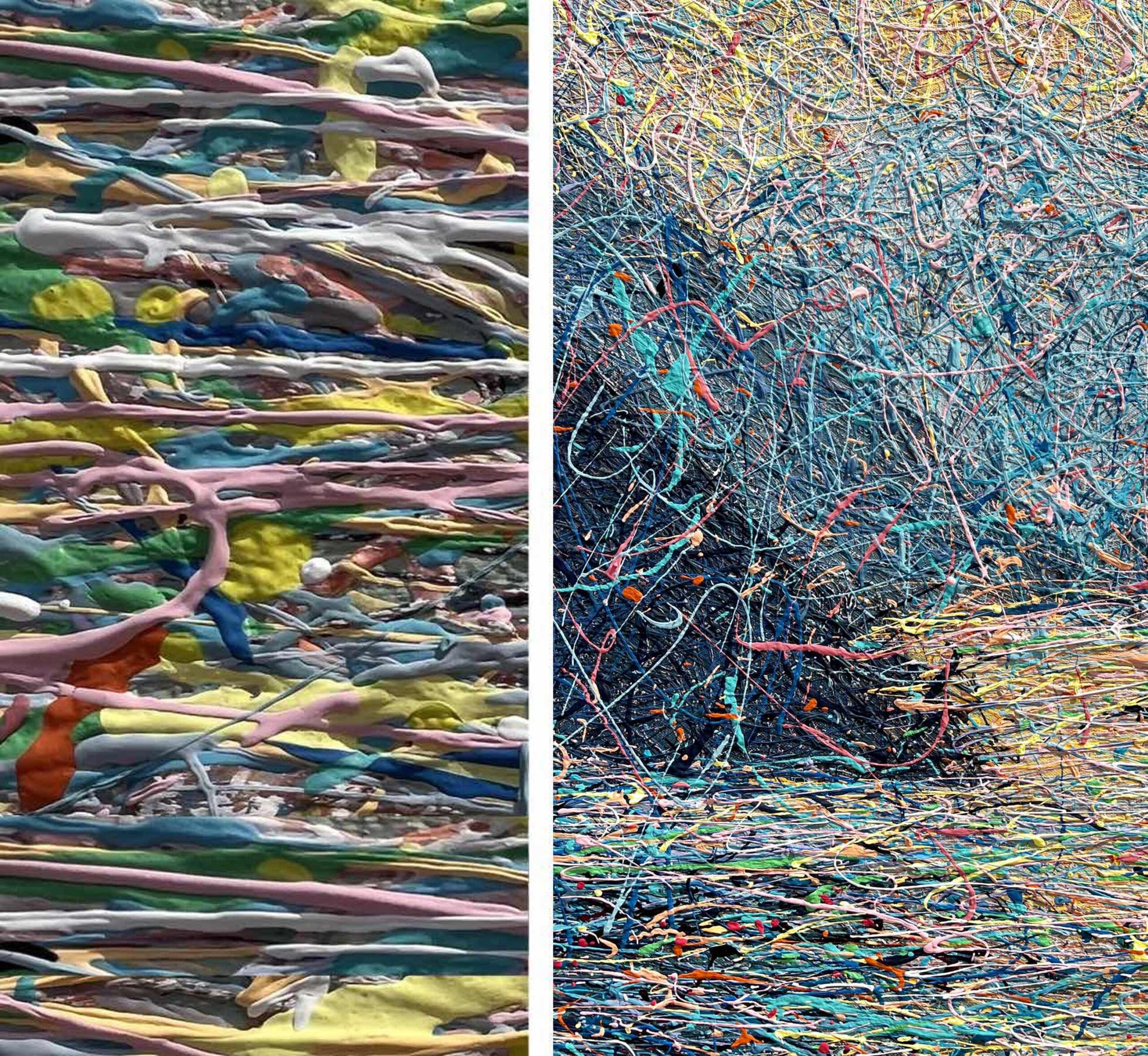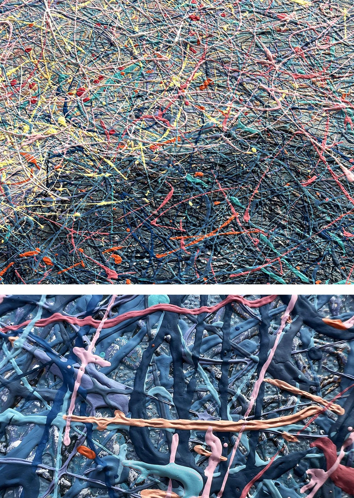 Painting style – the paint is applied in threads. The threads of paint seem to intertwine, creating their own canvas. Painting is made using multi-layer paint technique. A million multi-colored splashes dry before each subsequent coat of a colored the threads of paint is applied. In general, the painting has more then 50 layers of the application of colorful splashes.