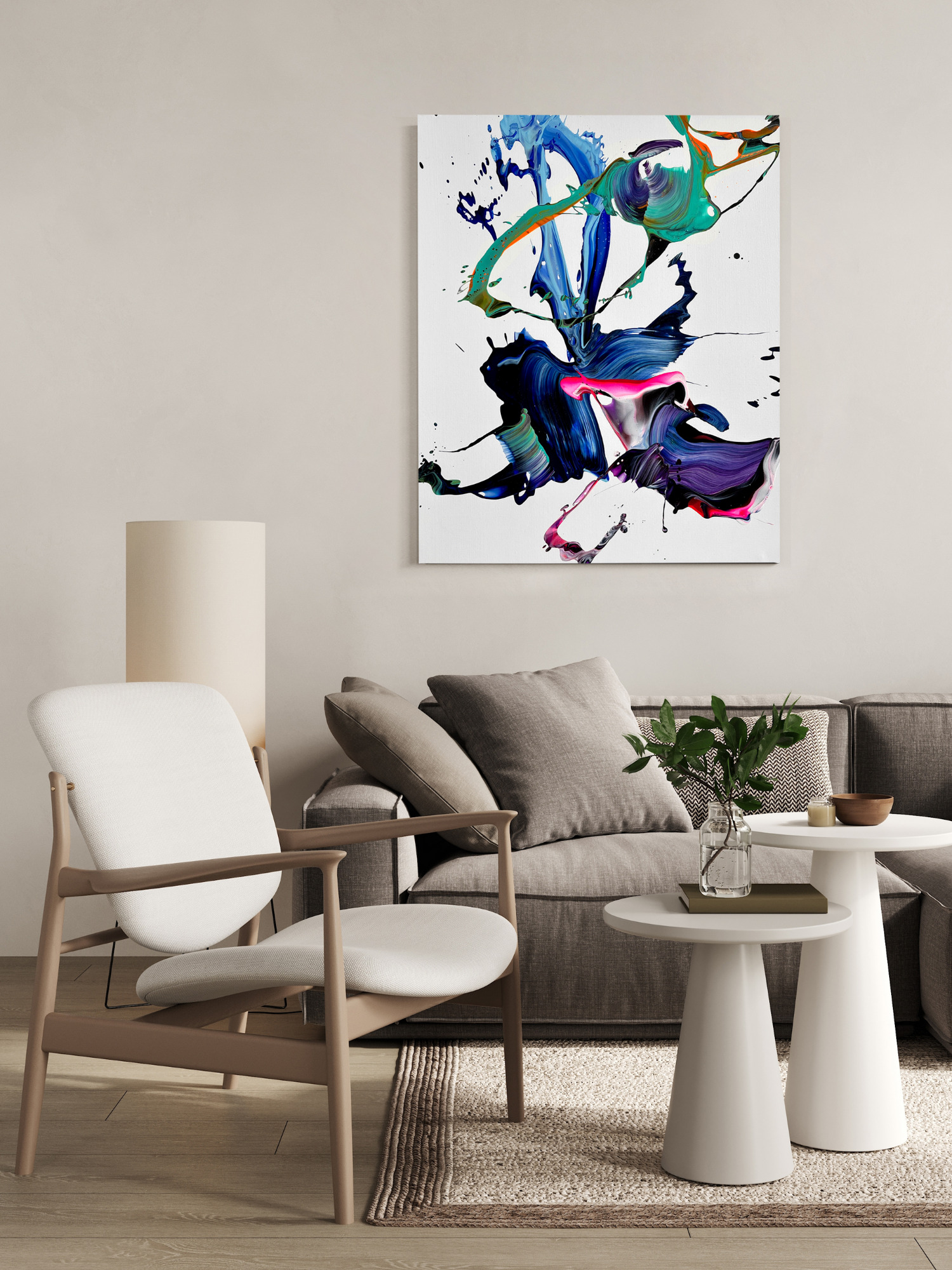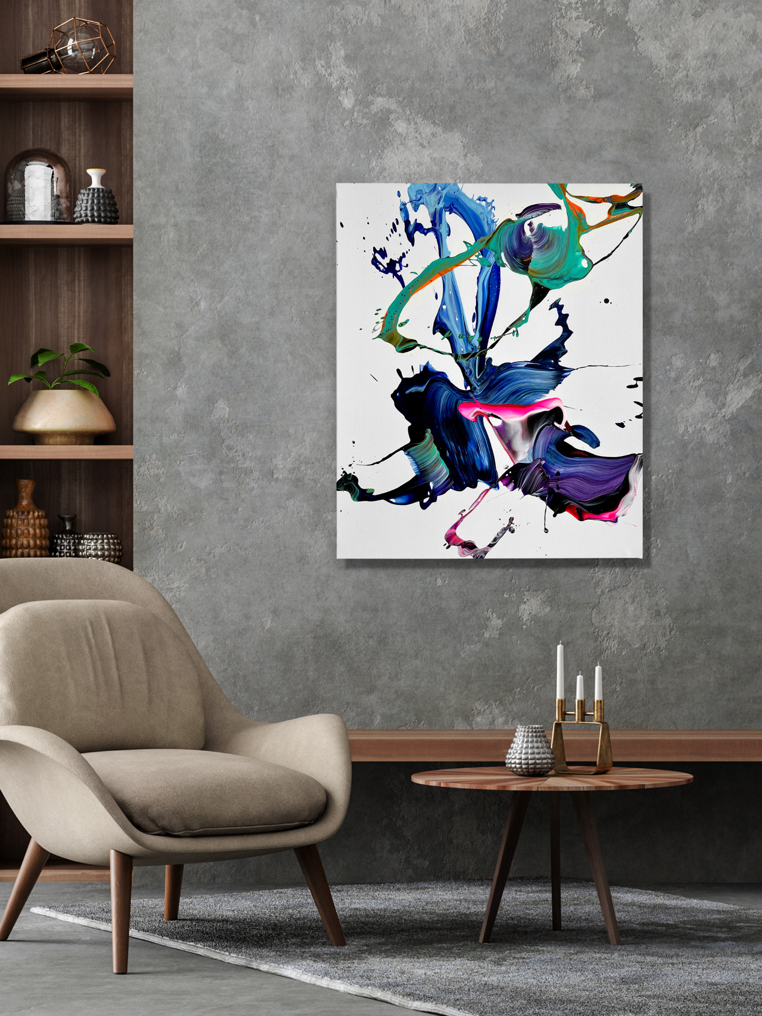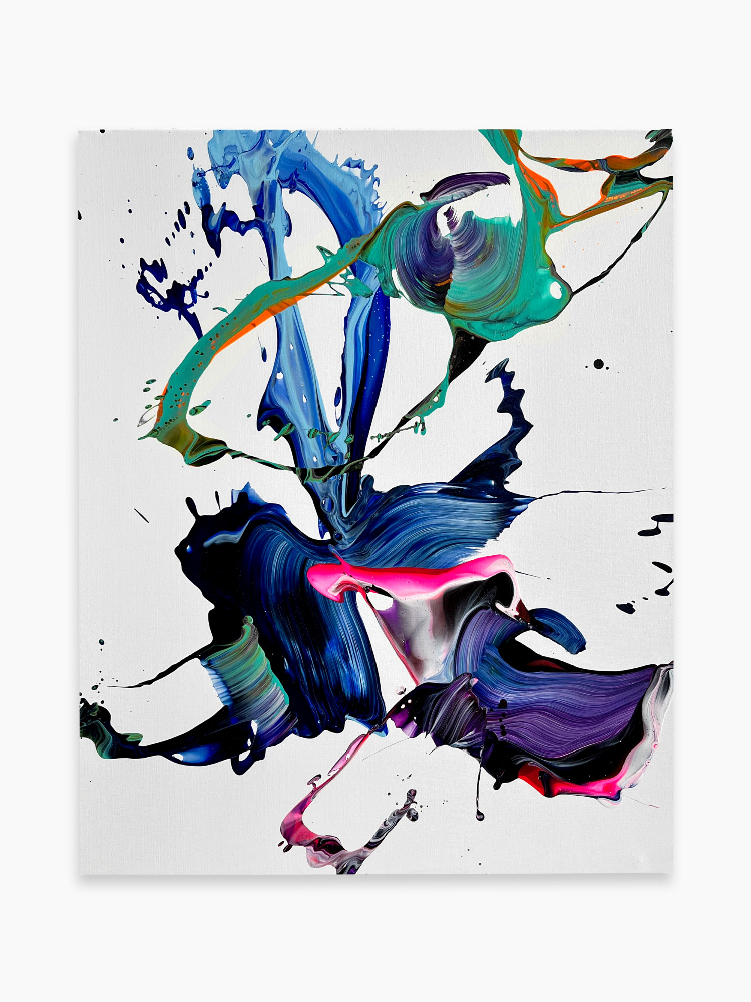 Schizas’ technique employs an eclectic mixture of materials spanning acrylics, spray paint and resin as part of his art practice. He often employs spraying, pouring or dripping directly onto canvas as well as traditional brushes or unconventional tools such as spatulas to apply his paint – this allows him to produce gestural marks which add emotional texture while at the same time showing his natural love of materiality of paint and an intuitive appreciation for emotionally charged hue relationships in his pieces.