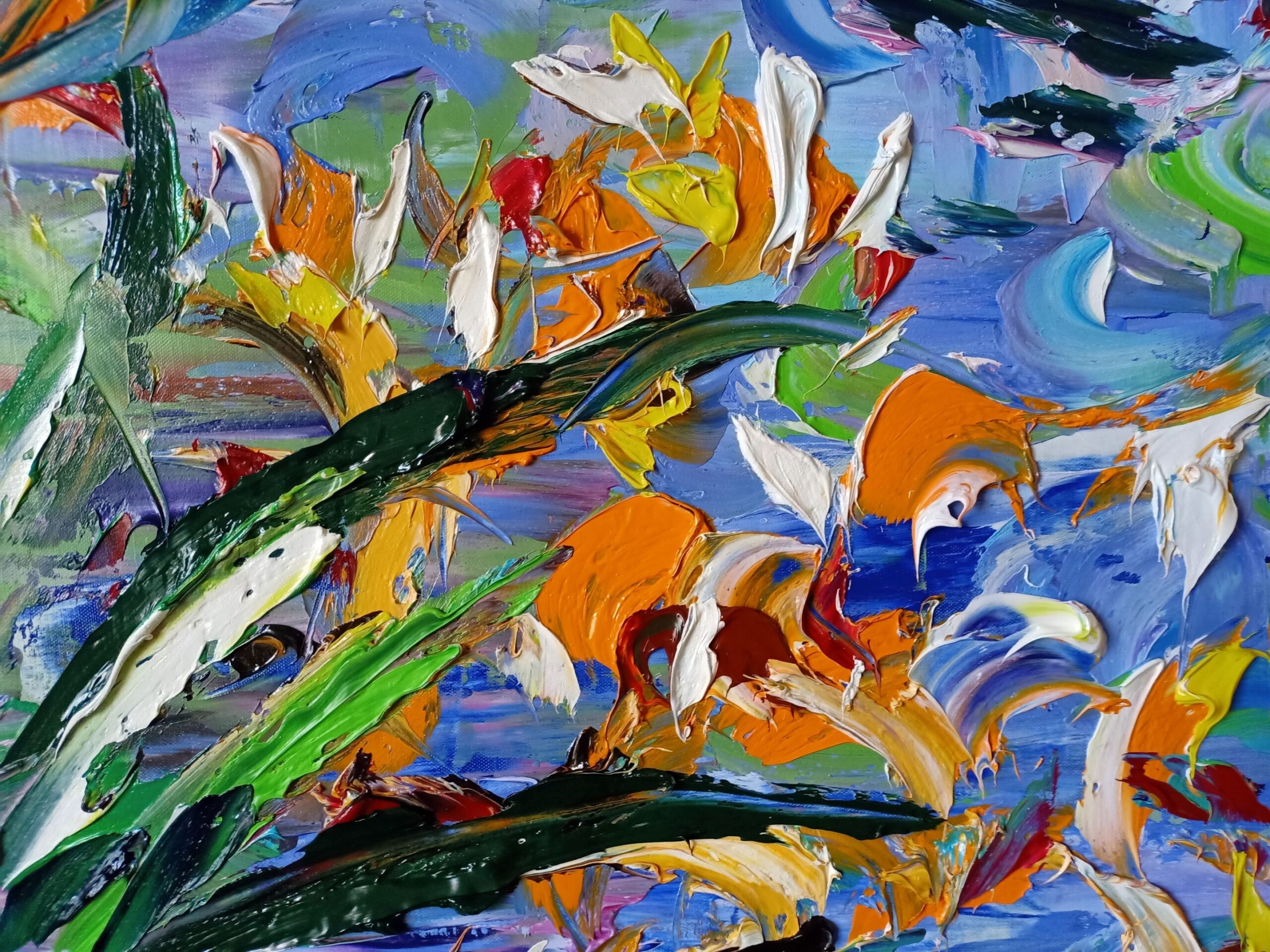 Rich impasto and layered textures build a dynamic, immersive composition where every stroke catches the eye. The work blends contemporary energy with an impressionistic sensitivity, transforming the landscape into an emotional, light-filled experience.