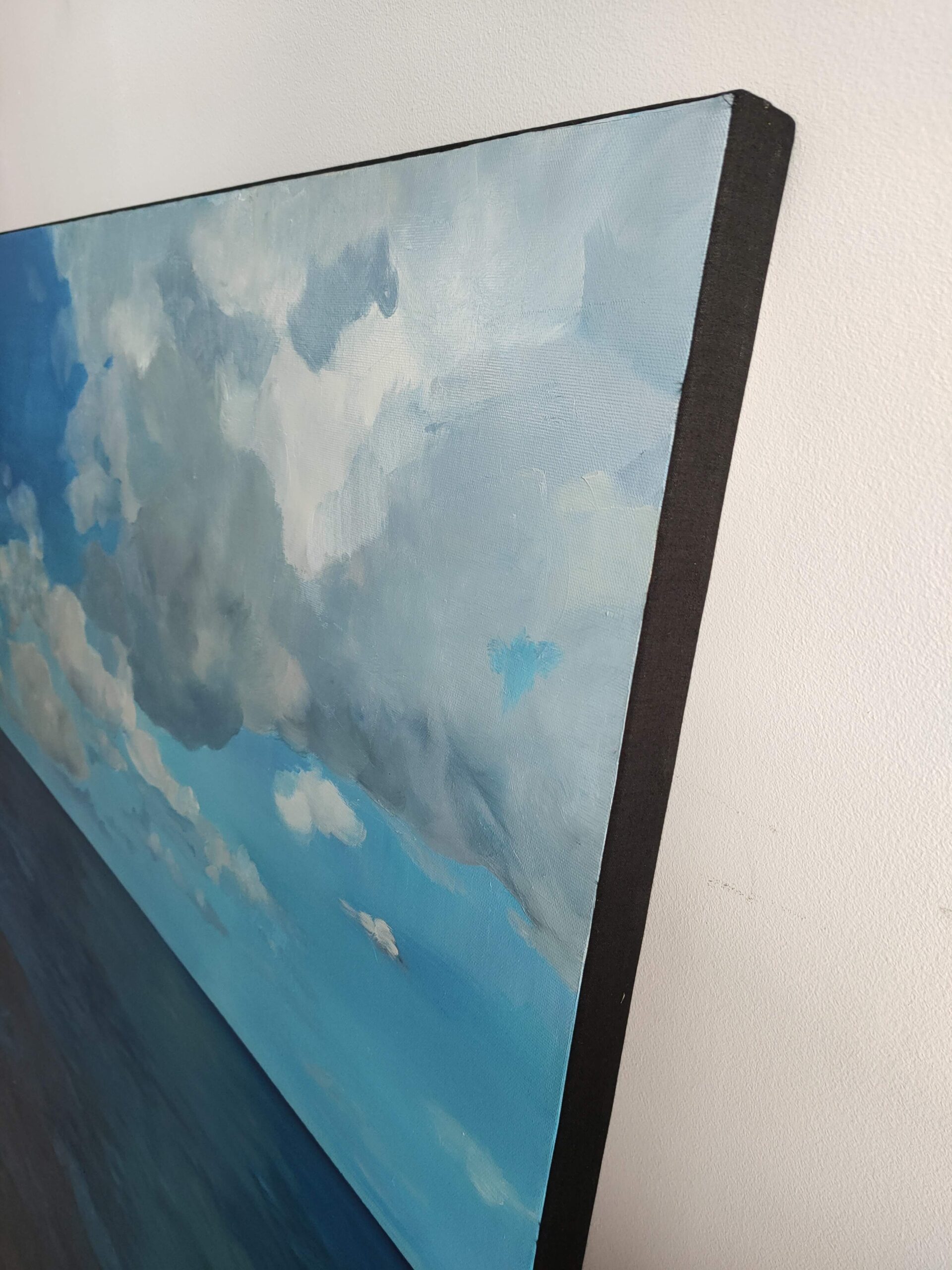 Infinitely blue as far as the eye can see, it was during a transatlantic that the artist looked at the ocean. This work is the first in a series on the ocean.
