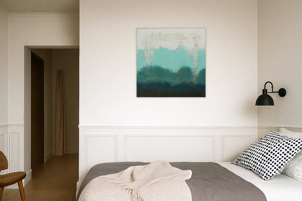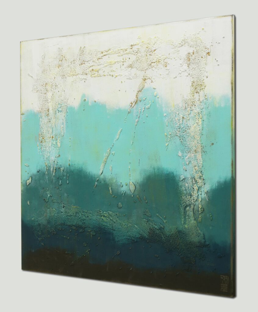 This artwork (Oceanic blue square by Ronald Hunter)is available for pickup at BelArt Gallery in Brussels, Belgium, or it can be delivered to the address of your choice within 2 to 3 weeks after your order is confirmed. The artwork is insured during transportation, so there’s no risk. Origin: Belgium.